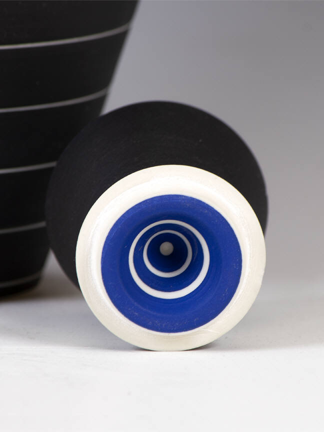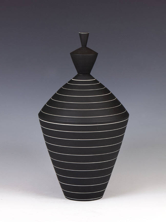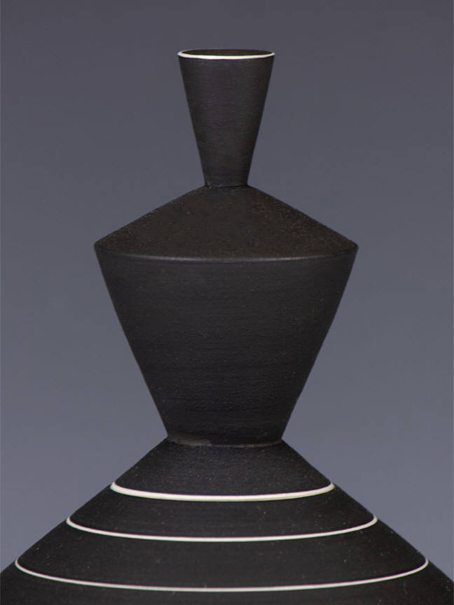 Delisle cites as seminal influences the Suprematist drawings of Malevich, the Constructivist theatre and ballet designs of Oskar Schlemmer, and the line drawings of Picasso. Her primary influences in the world of ceramics have been Lucie Rie (delicacy of form, use of line) and John Mason (monumentality, minimalism). Despite her awareness of these historical sources and her relentless reductivist sensibility, Roseline allows some interplay between intellect and intuition.