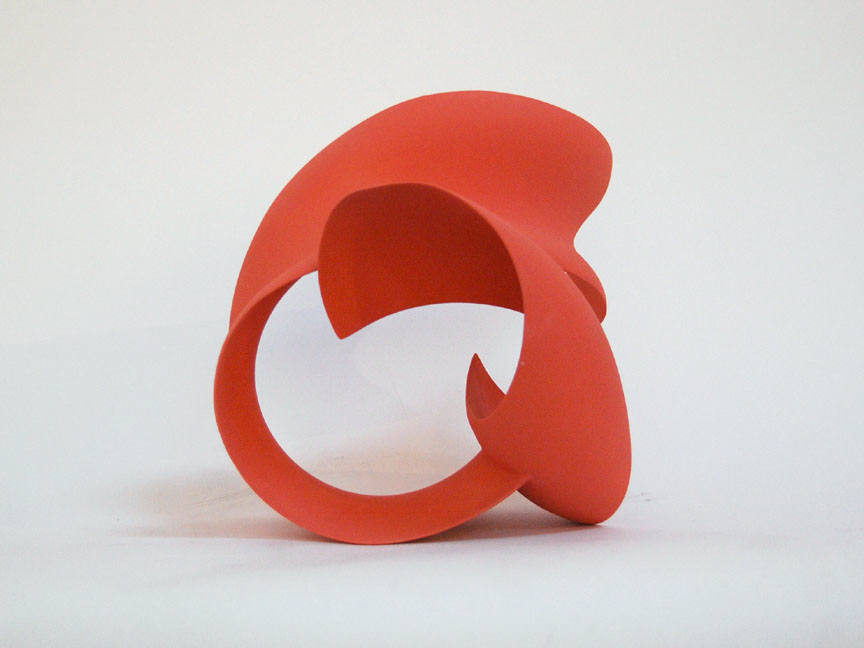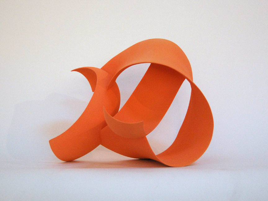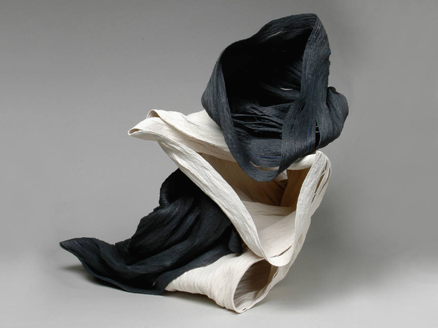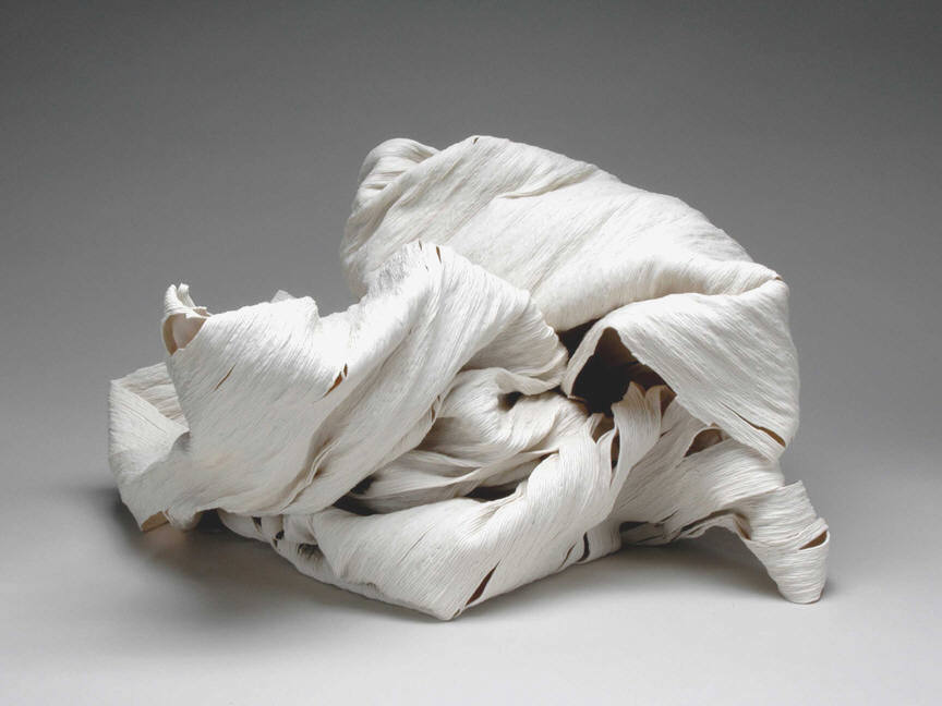 Wouter Dam is represented by a recent abstract ceramic sculpture. He builds his monochromatic sculptures by twisting and joining fragments from curvaceous cylinders. The bending and flowing forms contain and define complex spaces that seem to defy gravity. Like Frank Gehry's architecture and Richard Serra's sculpture, these small-scale sculptures are both structured and organic.