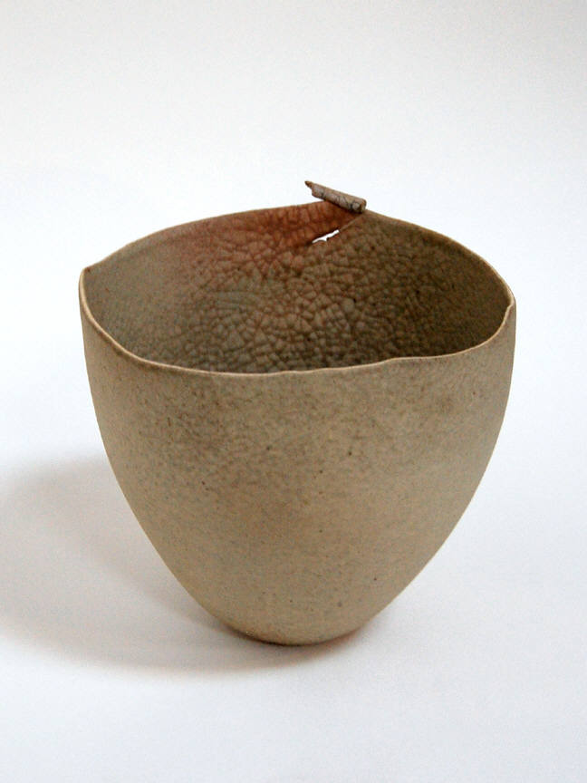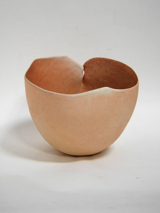 Richard DeVore (1933-2006) worked around a central premise throughout his career. DeVore has explored ideas while working within a basic structure. His signature form involves a vessel, colored in earth or flesh tones, with an irregular rim, tapering into a rounded or flat base. Working within these parameters, DeVore creates a strikingly rich variety of work. His vessels may be deep or shallow, rugged or even, squat or svelte. A glance inside may reveal a smooth hollowed bottom, a doubled interior floor, or even a thin, membranous shelf. Likening DeVore's works to a crowd of people, Janet Koplos write that they are "recognizable as a species but amazing in their variety."