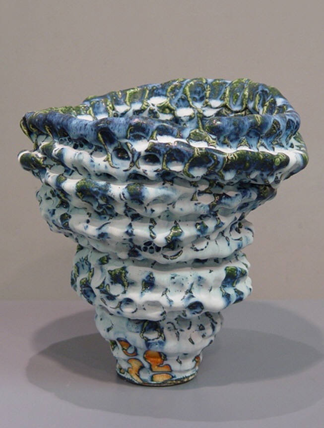 Cheryl Ann Thomas will be represented by a ceramic sculpture made by the coiling process. By allowing the construction to collapse and take accidental form during the firing, she has created a subtle and provocative work. The piece is a record of her interaction with the material, as she allows the process to be her subject. In addition, Thomas joins together multiple pieces to construct a sculpture.