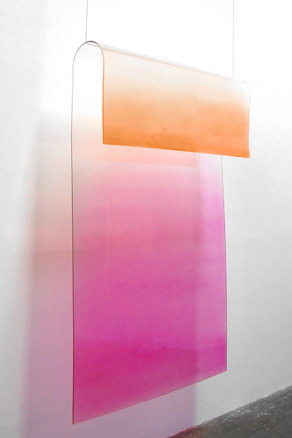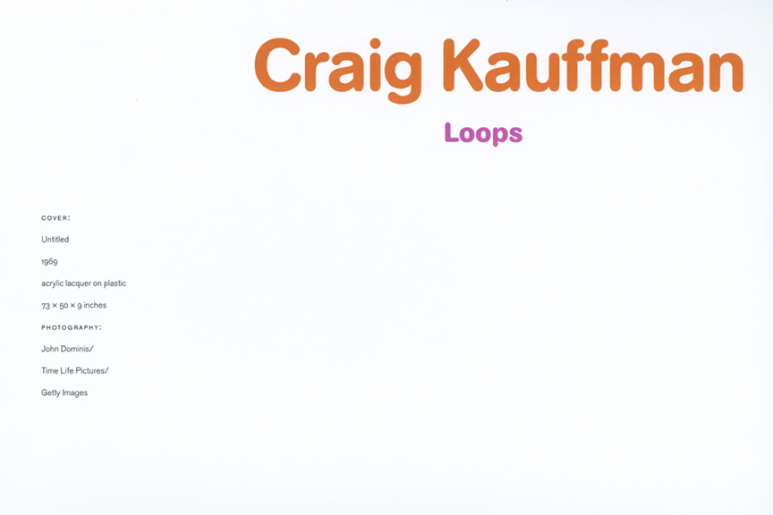 The work of Craig Kauffman (1932-2010) is internationally recognized for its sensuous use of new materials and subtle, luminous use of color. Included in many recent major surveys of seminal Los Angeles art, Craig Kauffman's work exemplifies the holistic integration of color and form, made possible by his painterly concerns as well as his embracement of industrial techniques. In the first exhibition to be drawn from the Estate of Craig Kauffman, the Frank Lloyd Gallery presents a series of works made in 1969. Kauffman considered the 1969 works, which became known collectively as the Loops, to be the simplest of his works. These paintings were made from a single sheet of clear acrylic plastic and painted with sprayed acrylic lacquer. Suspended and floating slightly away from a wall, they reflect Kauffman's life-long interest in unorthodox supports for painting, as well as a sensuous and luminous color sensibility.