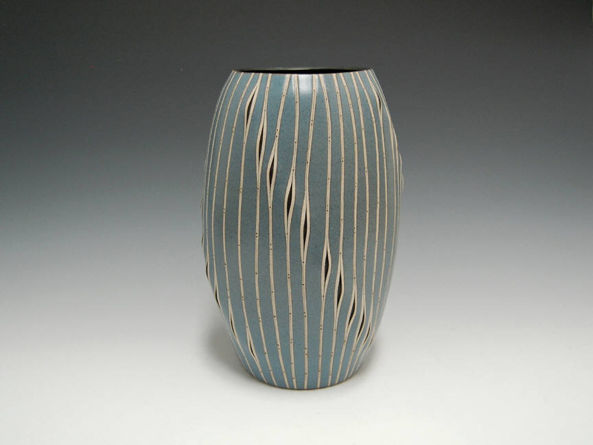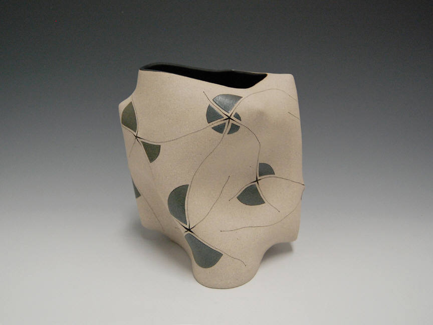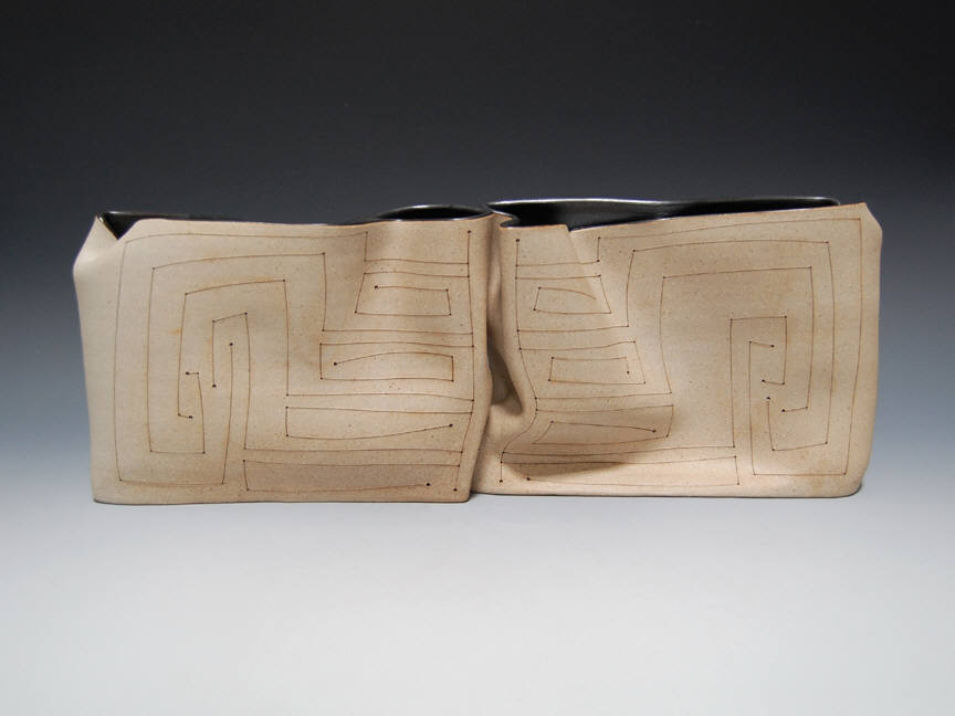 Mexican ceramist Gustavo Pérez makes vessels that are simple, smooth and symmetrical. Their elegance is derived from the precision of the incised lines and other graceful markings on the pots. While using the same clay body--sand colored stoneware--throughout his work, the artist achieves a wide range of form and pattern and includes slowly undulating walls beneath the subtly incised surfaces. The ceramics of Gustavo Pérez are distinguished by eliminating superfluous details and by synthesis of his elements. Pure in form and without specific associations, his language of line and the definition of the vessel mark his work as a distinctive voice. The form is not just a container or a receptacle; it is architecture. The work is also a support for drawings, which are at once ancient and modern, mechanical and lyrical.