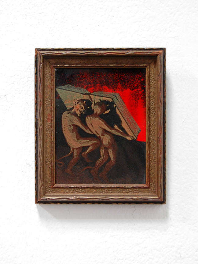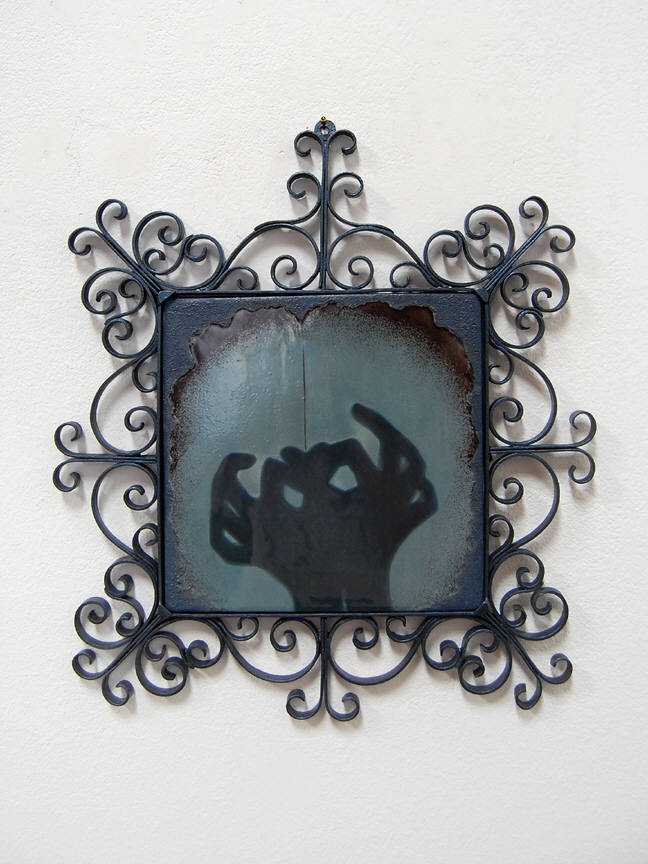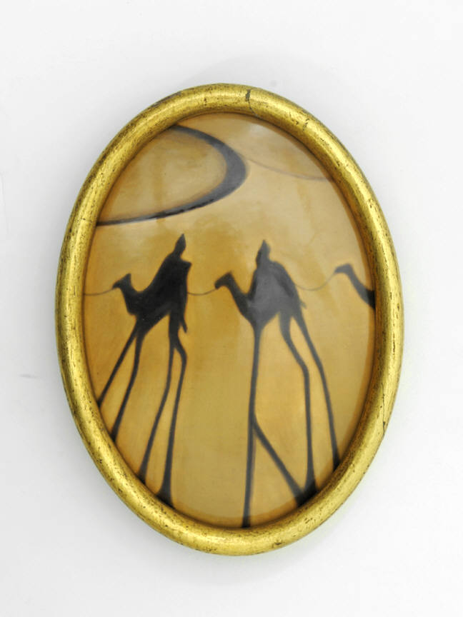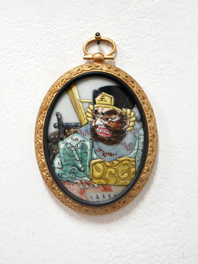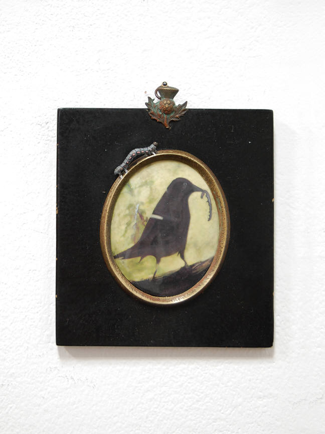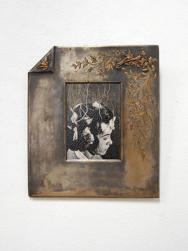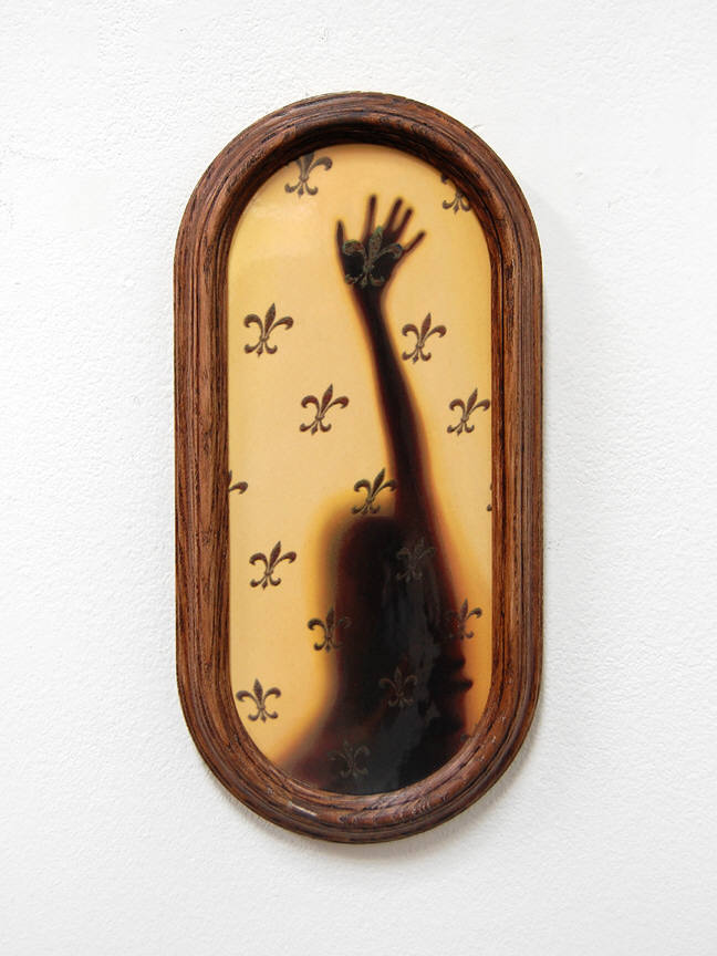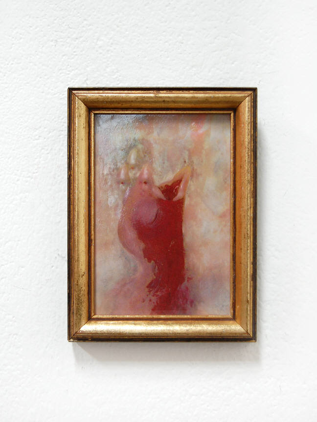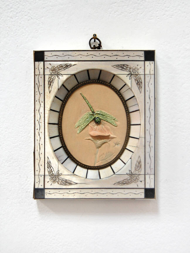 Cindy Kolodziejski previously made vessels by recombining and manipulating antique vessel forms, and meticulously painting her images. Kolodziejski's new work incorporates the animal world as well as startling shots of flayed skin and human jokers. The antique frames add layers of age and metaphor. The artist entices the viewer by intimacy of scale—enclosing the portraits in the manner of cherished mementos. Thus, Kolodziejski sets up an unusual tension. There are mixed references to animals, fish, and human interactions with the natural world.