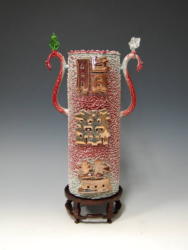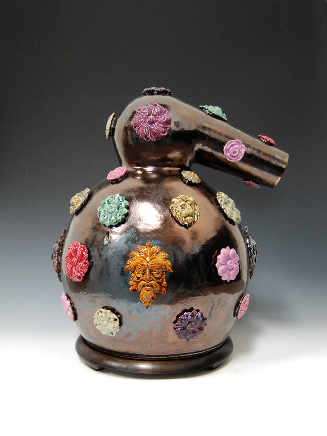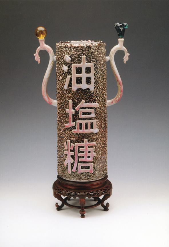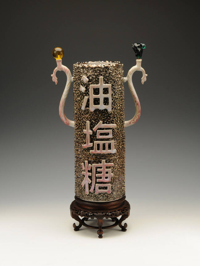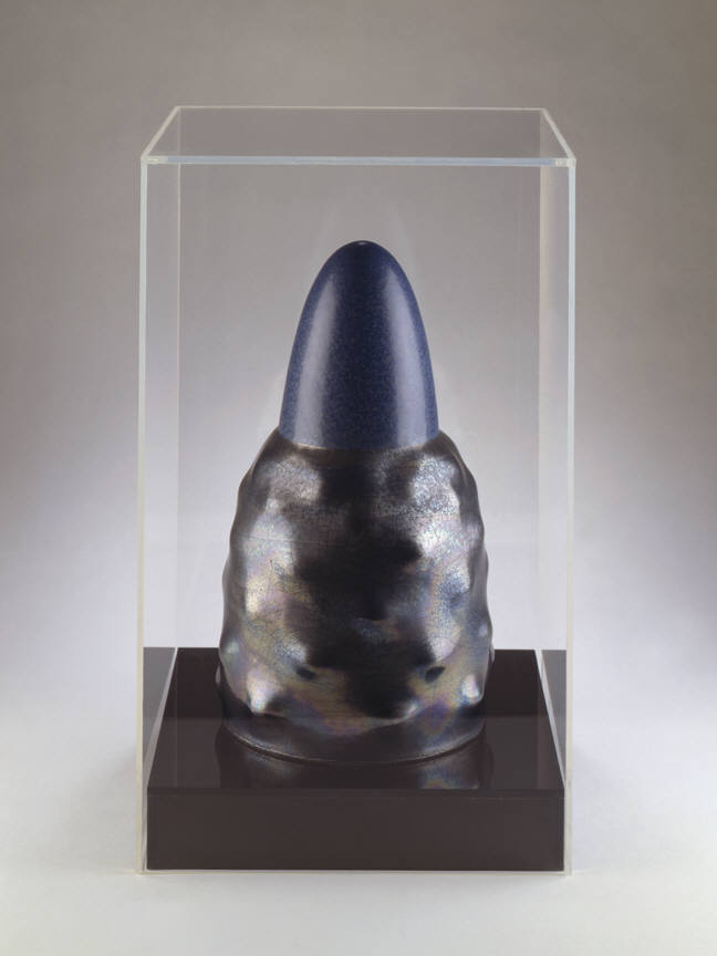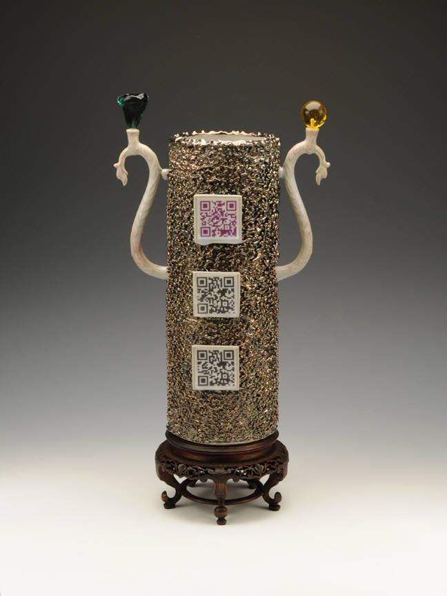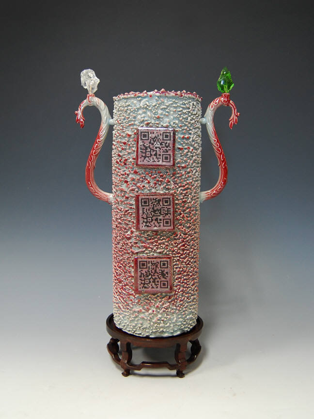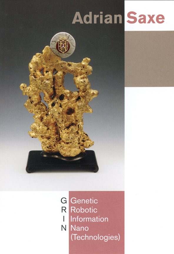 Saxe has worked with the ceramic vessel because he saw the opportunity to address complex social and cultural issues in a format accessible to a broad audience. Since the early 1980s, Saxe has sought to reinvent a role for ceramic art that employs decorative art conventions to comment on social and cultural expectations surrounding a number of topical themes. Some of these themes are explored in his new exhibition, GRIN—Genetic Robotic Information Nano (Technologies).