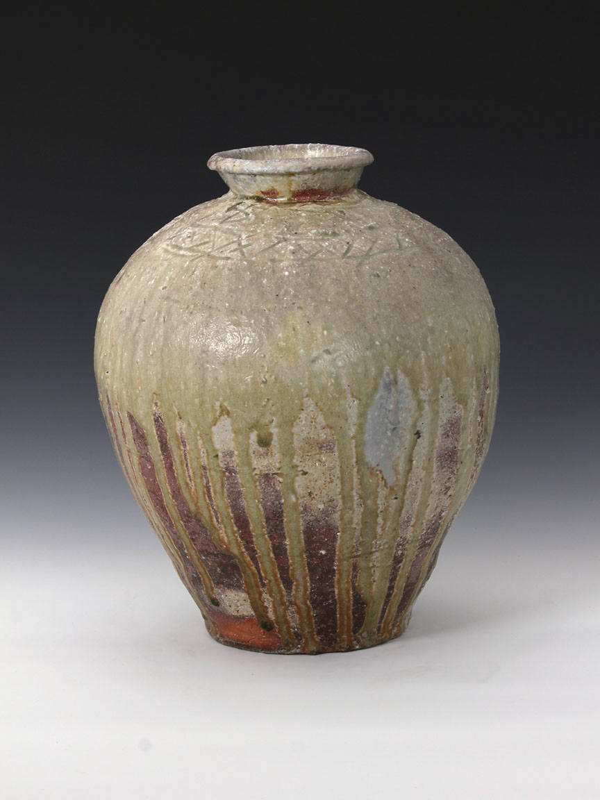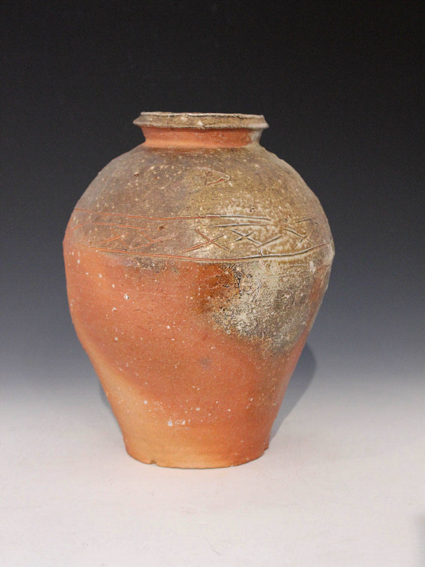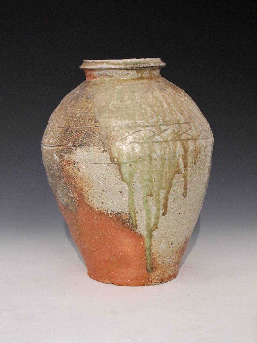 Sugimoto-sensei is regarded as the greatest living master of Iga and Shigaraki, and he has received many honors in Japan. His work was highlighted in a 1989 exhibition that celebrated the 400th anniversary of the death of Sen no Rikyu, the legendary early master of the Tea Ceremony. That same year, the famed scholar of Tea Ceremony ceramics, Hayashiya Seizo, selected Sugimoto-sensei's work to represent Shigaraki and Iga masterpieces of the Momoyama period that are registered as National Treasures, for use in the movie made in that year titled Rikyu, a well-received treatment of the life of this master of the Tea Ceremony.