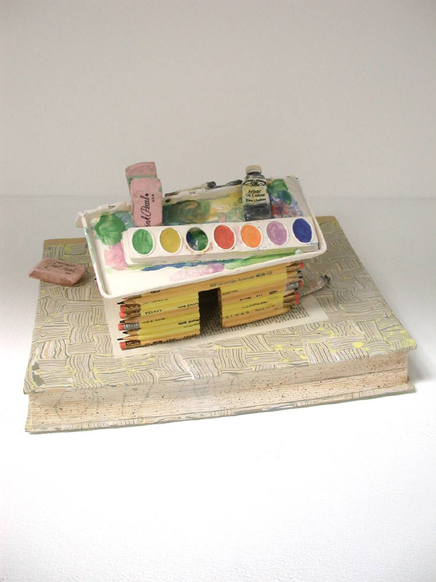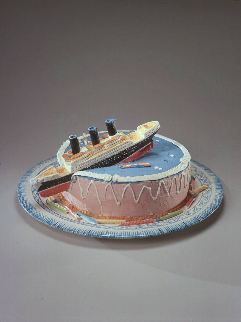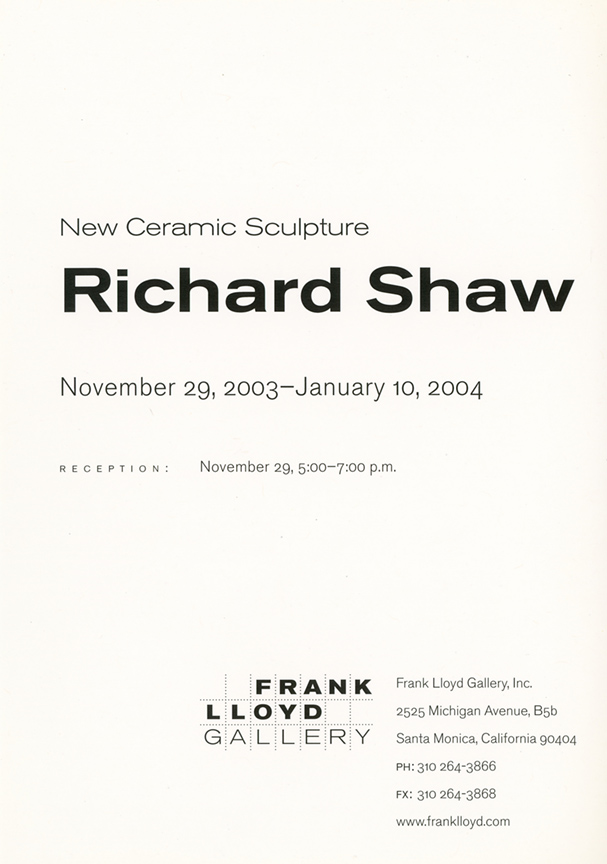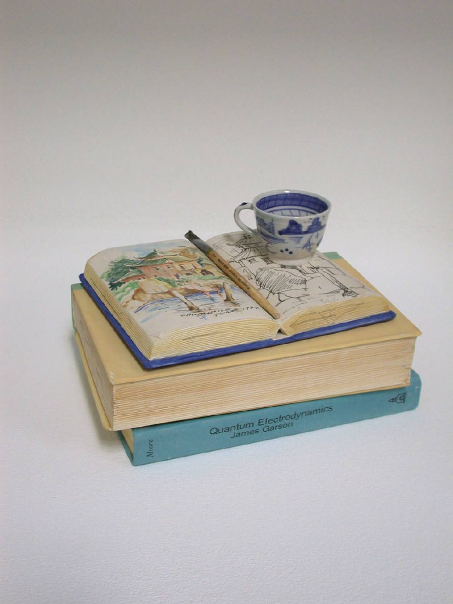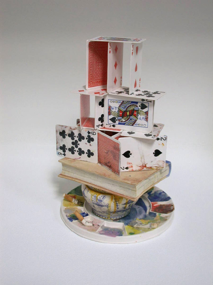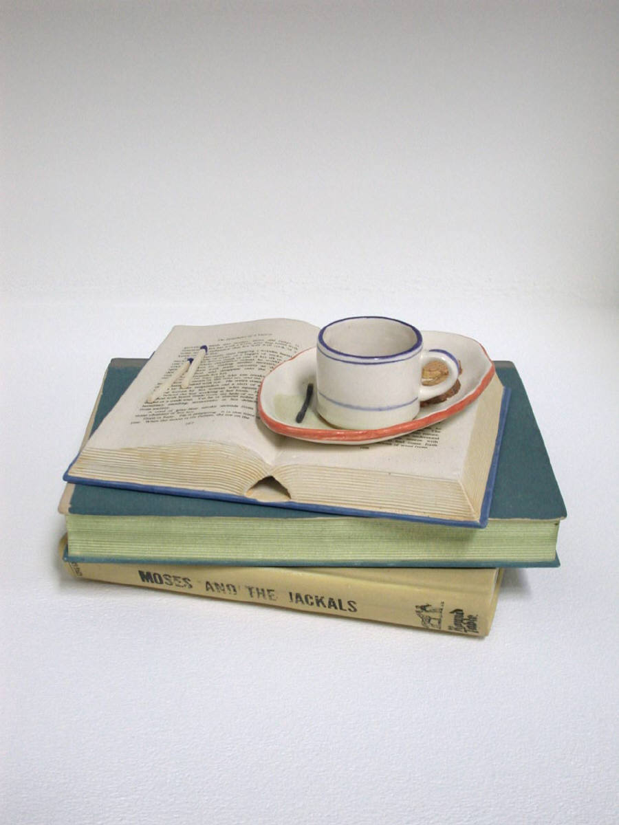 The new work of renowned ceramic artist Richard Shaw is on display at Frank Lloyd Gallery throughout the holiday season. In addition to four monumental large-scale figures composed of Shaw’s signature trompe-l’oeil objects, Shaw presents his meticulously crafted still life sculptures. Viewers can expect to see cakes, books, teapots, plates, and even a pencil house.
