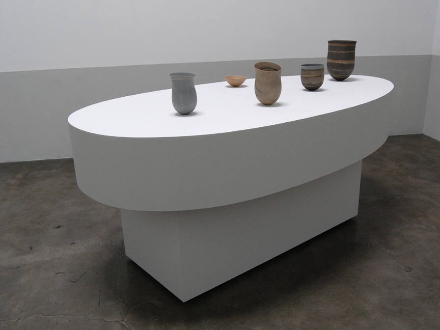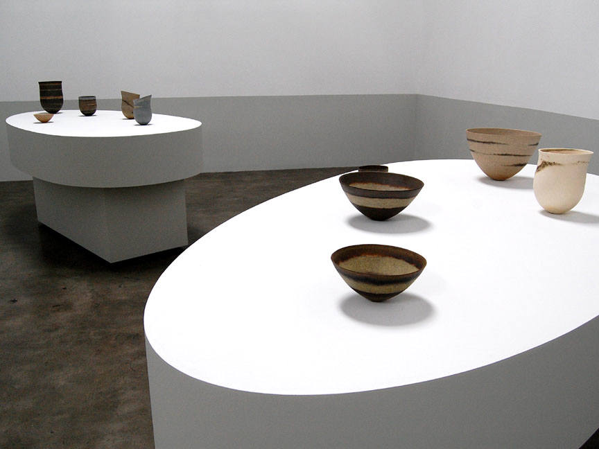 The Frank Lloyd Gallery is pleased to announce an exhibition of new work by Scottish born ceramist Jennifer Lee. Composed of ten elegant and intimate vessels, the show is marked by a feeling of graceful suspension as the works settle lightly into the space. Lee hand-builds her pots, using an arduous method of ceramic construction. This long process heightens her profound sensitivity to her material, and the finished works illustrate her instinctive understanding of form and volume.
