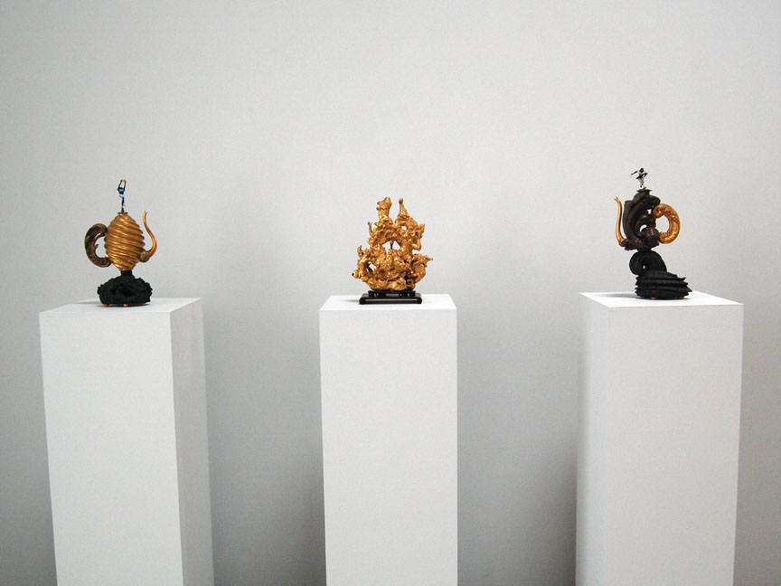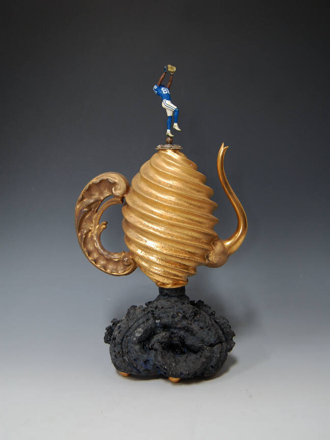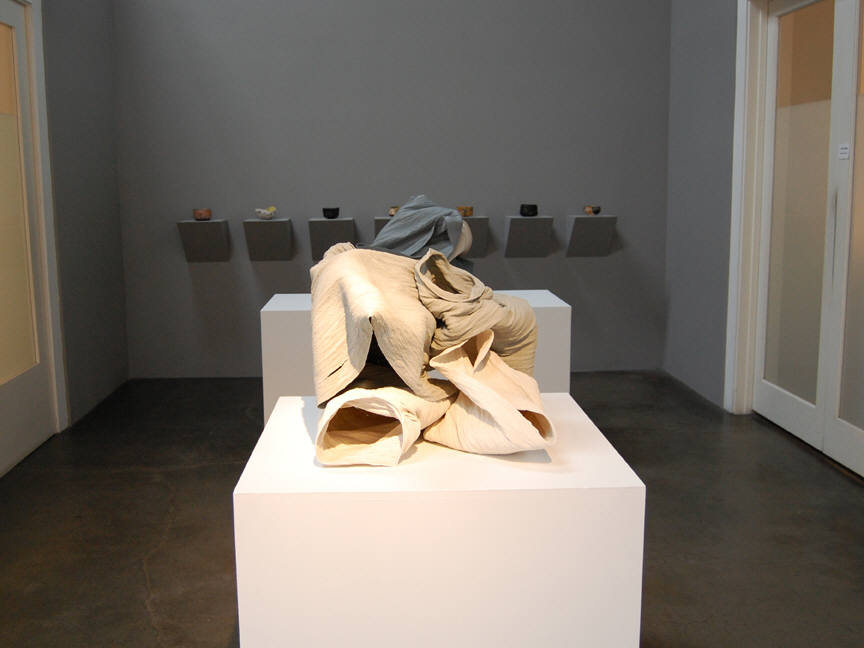 Two more of our American artists complete the exhibition, with their diverse interpretations of ceramic traditions. Cheryl Ann Thomas's delicate porcelain sculptures, which allude to the transience and delicacy of existence, are coiled by hand, a technique used by Pre-Columbian, Native American and West African peoples. Adrian Saxe creates works that simultaneously reference contemporary culture, ceramic history, and word play.