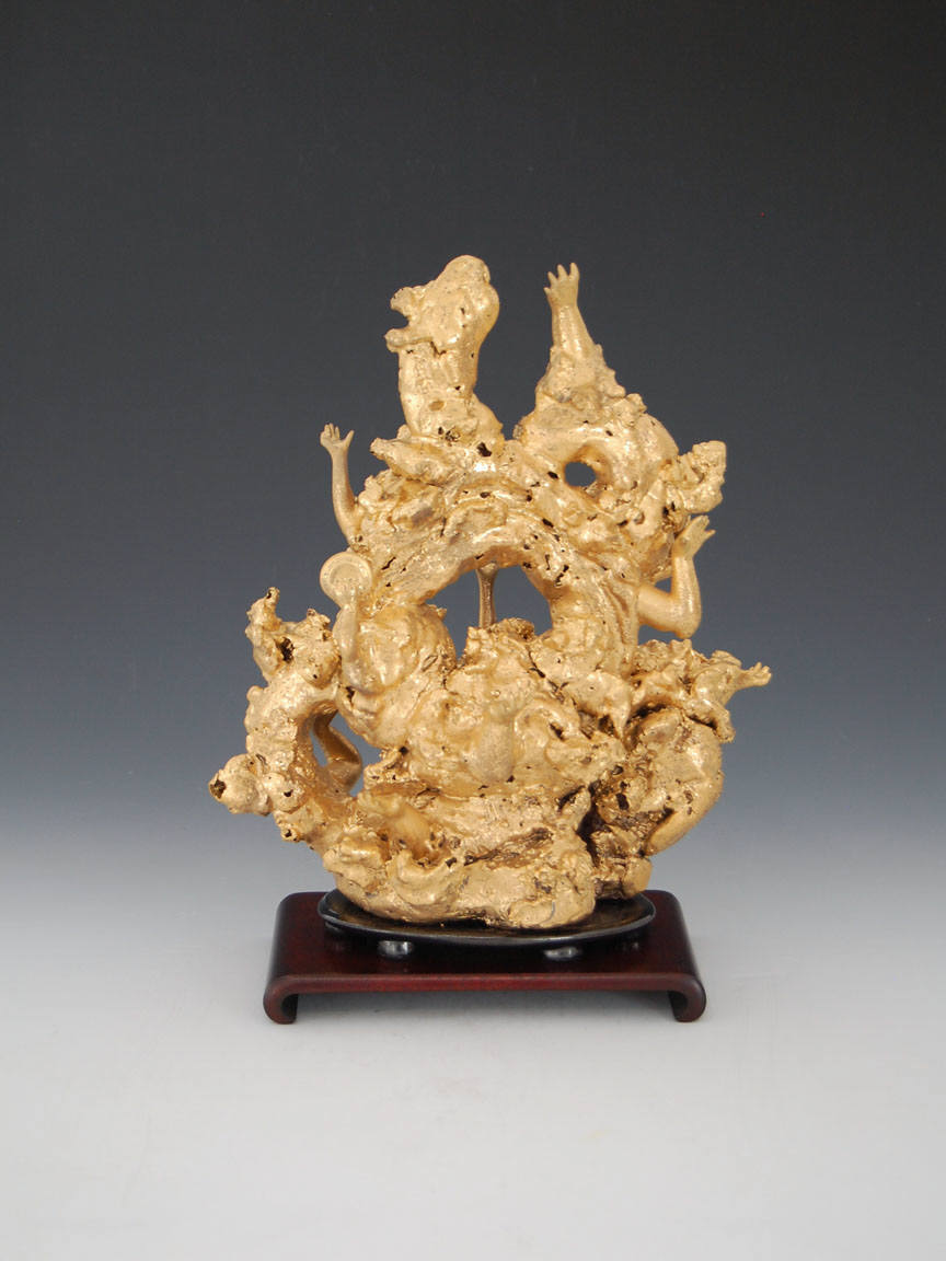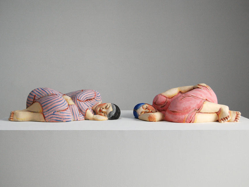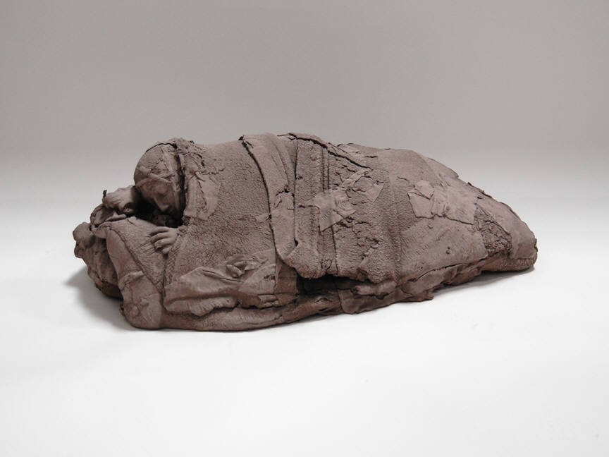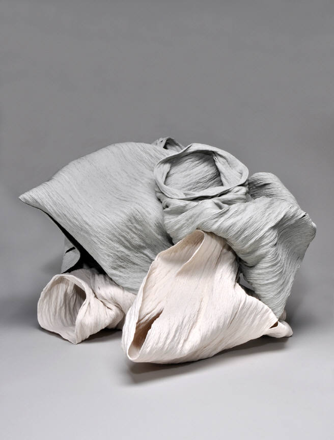 Dutch artist Wouter Dam creates finely-wrought, monochromatic ribbons of clay, whose abstract forms subtly reference classical vessels, the human body, wooden boats and the crashing of the waves. In contrast, Georges Jeanclos's sculpture is powerfully figurative, recalling his childhood experiences hiding in the woods of Vichy France during the Nazi occupation of World War II.