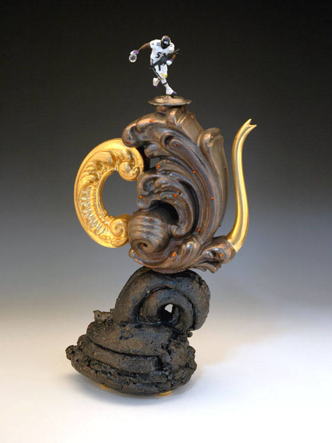 Japanese-American artist Akio Takamori draws on his own childhood in postwar Japan, in figurative sculptures that continue his investigations into the meaning of community, and demonstrate his cross-cultural background. Meanwhile, Gustavo Pérez, a native of Mexico City, makes vessels that are simple, smooth and symmetrical. Like a musician improvising on a melody, he works through variations of incised lines and architectural forms. Japanese master ceramist Goro Suzuki works in many styles, producing vessels that are rooted in regional Japanese traditions while at the same time developing his own distinctive techniques.