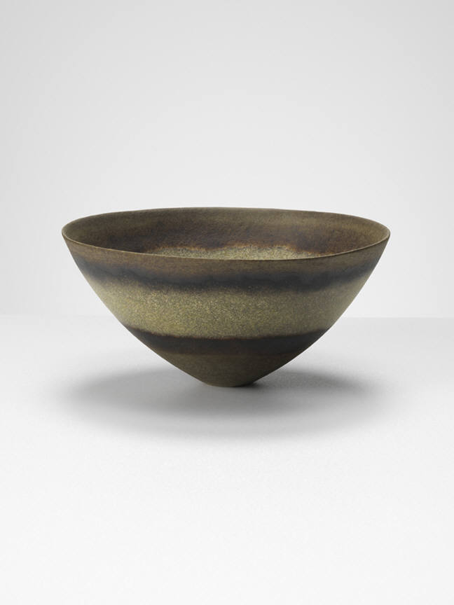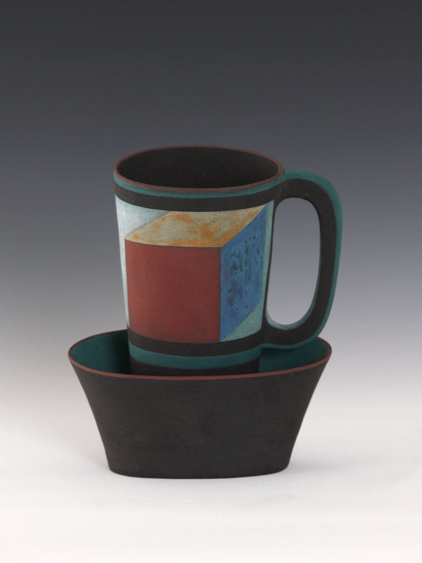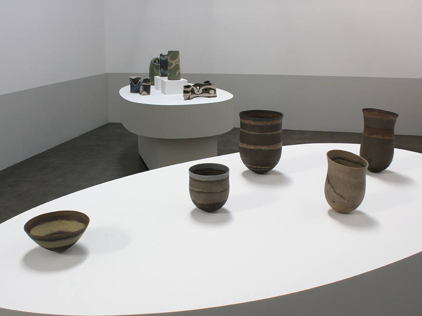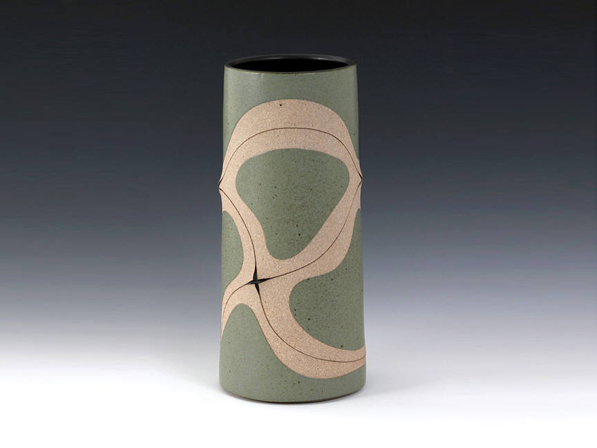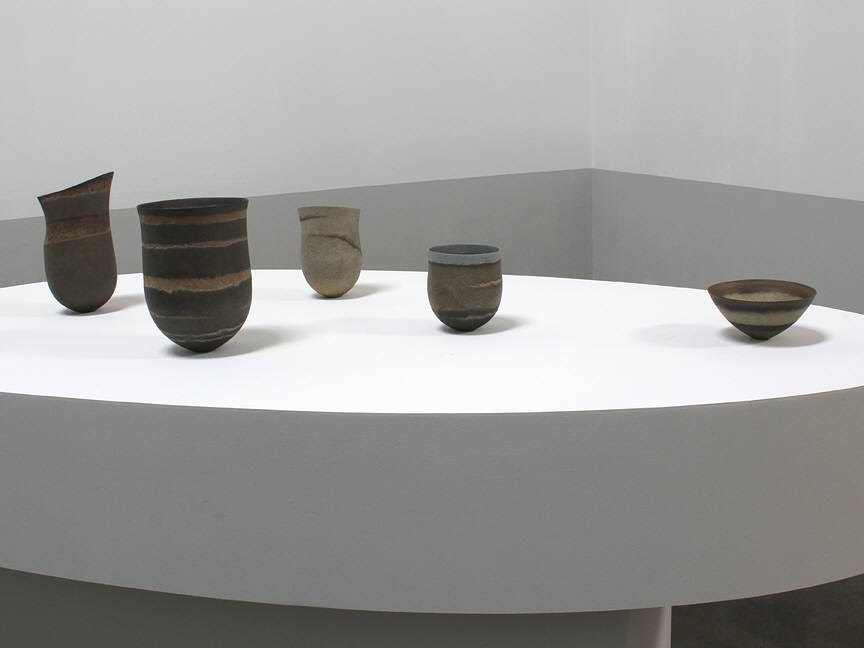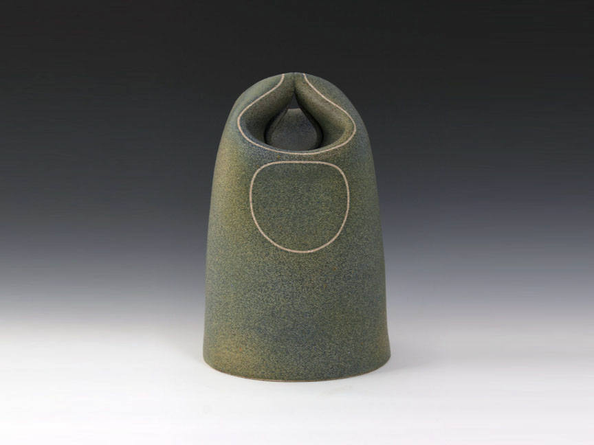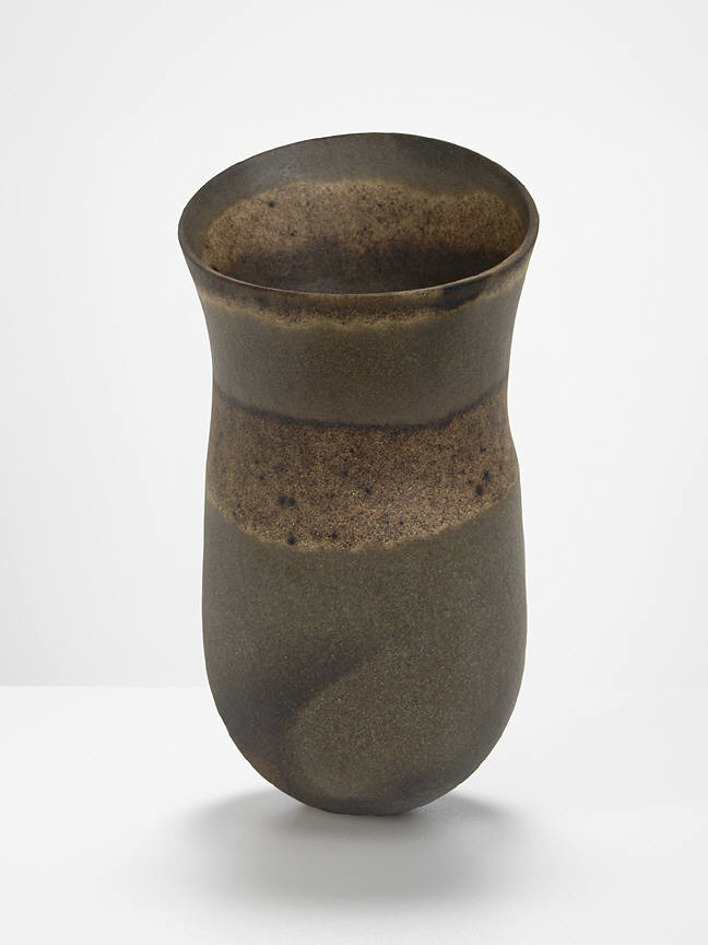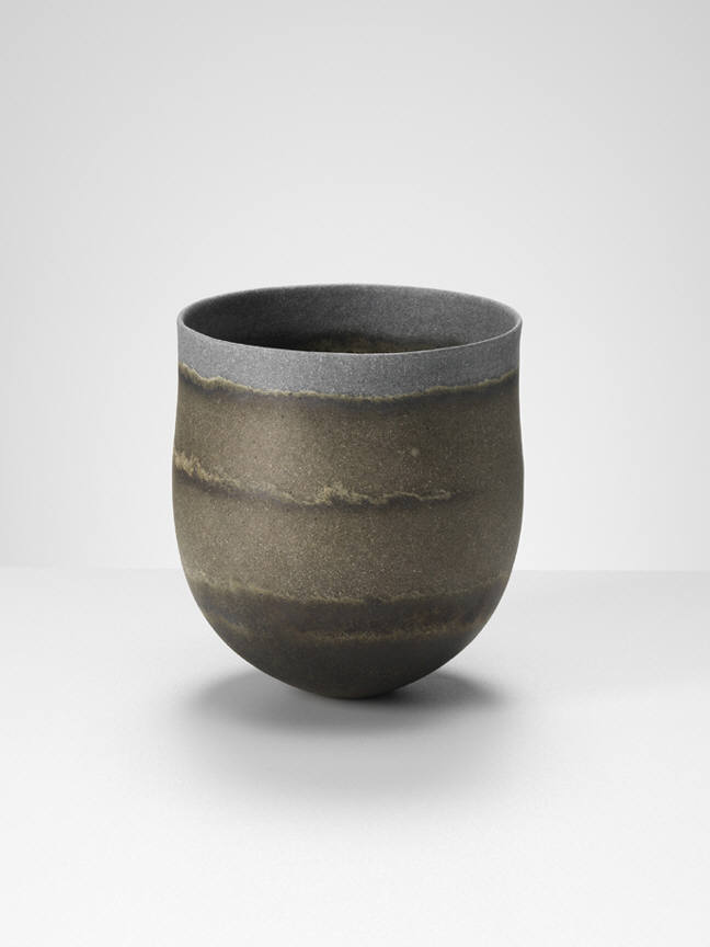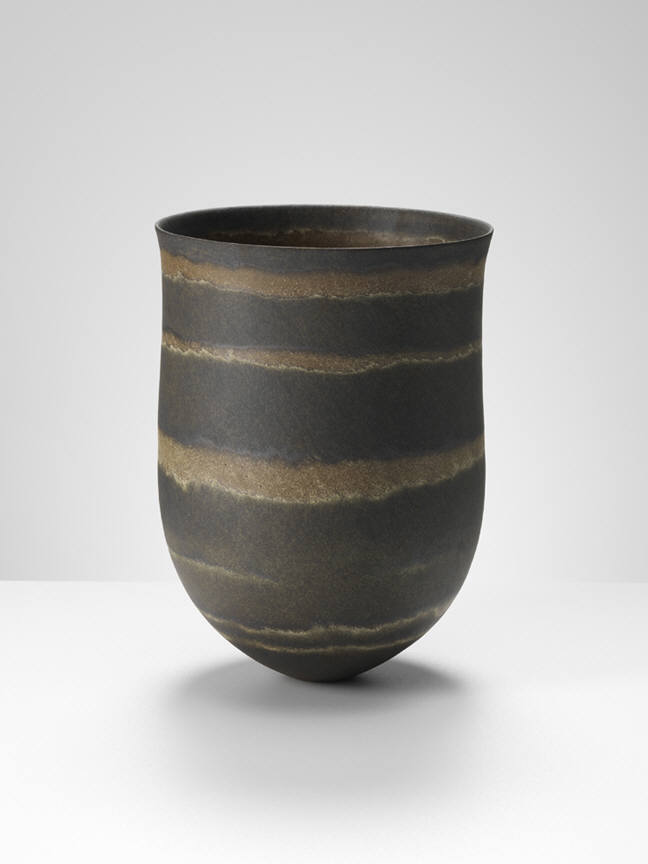 This time, we're including work by two British ceramists. Elizabeth Fritsch has been a leading figure in British ceramics since the 1970s, and her work is characterized by its sharp profiles and architectural qualities. After meticulously smoothing her hand-built vessels, she colors them with dry matte slips and geometric motifs. Jennifer Lee also hand-builds her graceful, unglazed vessels, and she achieves her singular colors by incorporating metallic oxides into the stoneware clay bodies of her pieces.