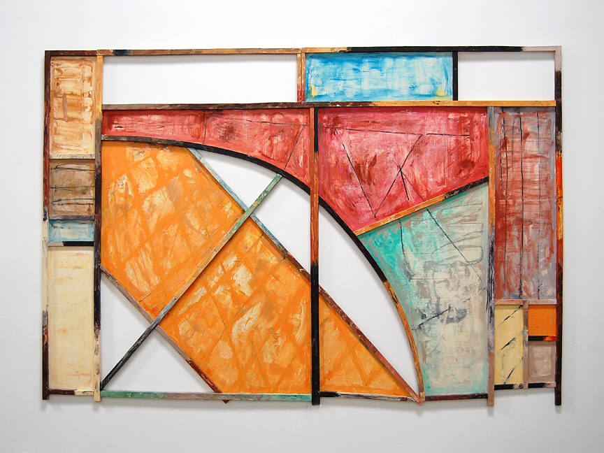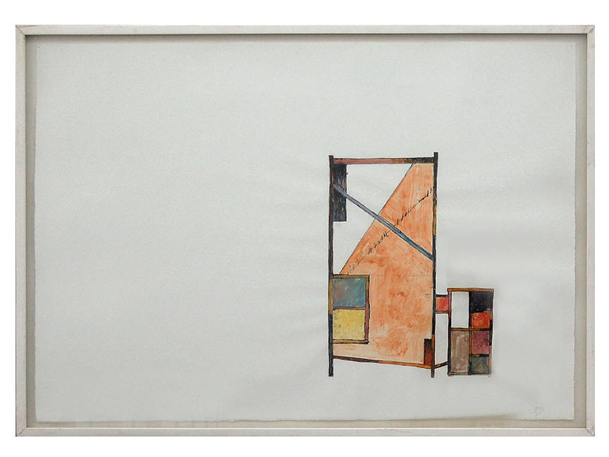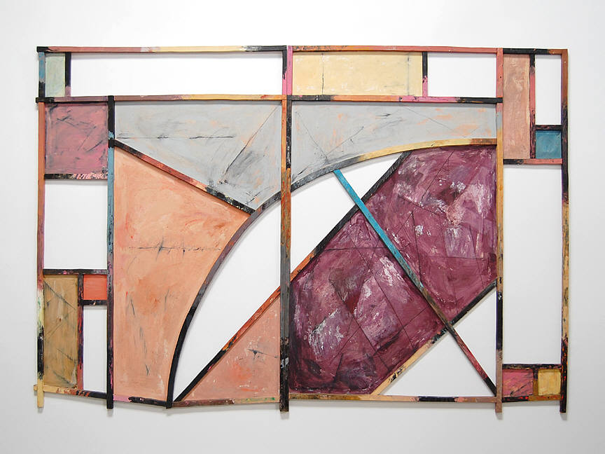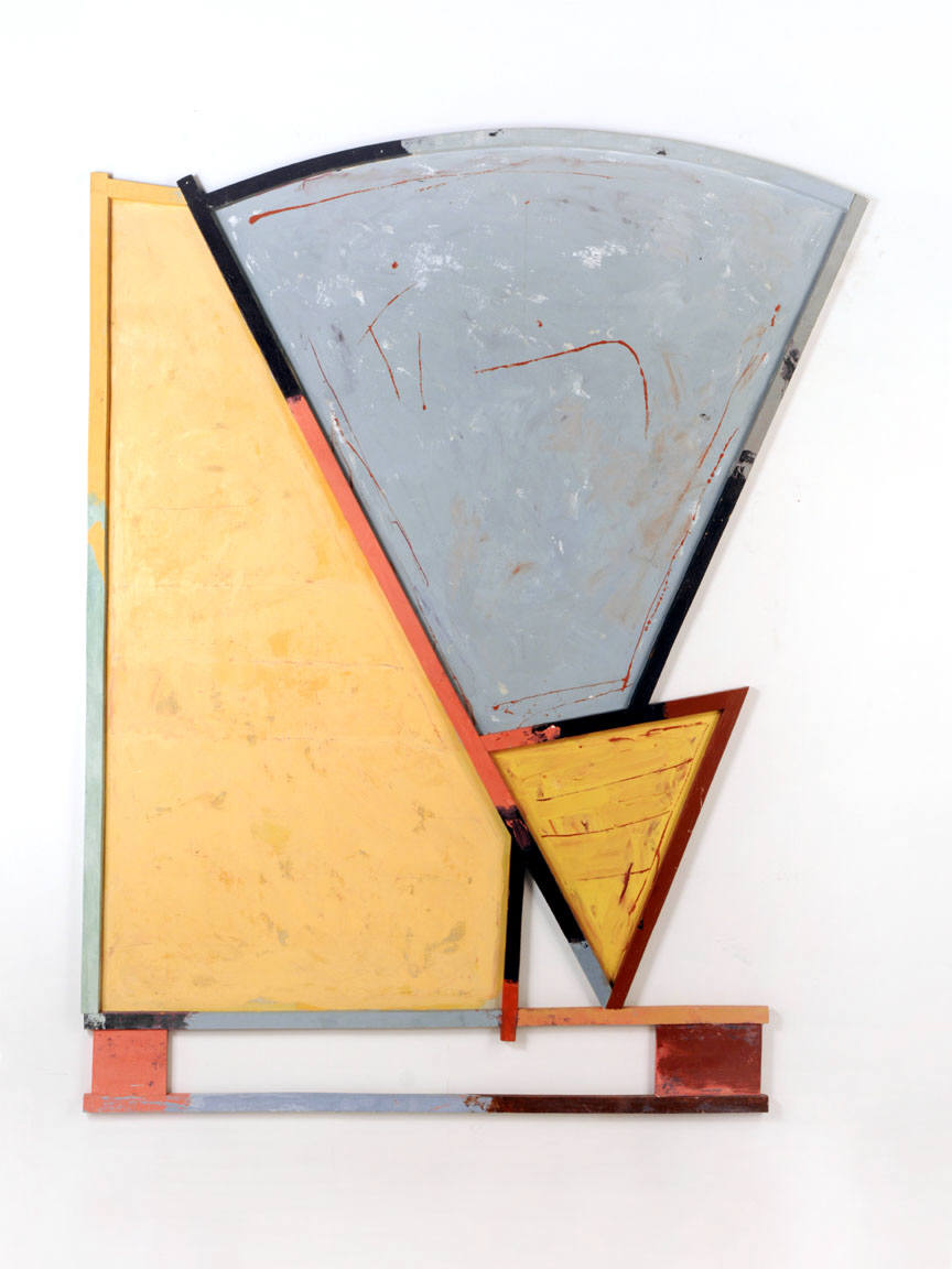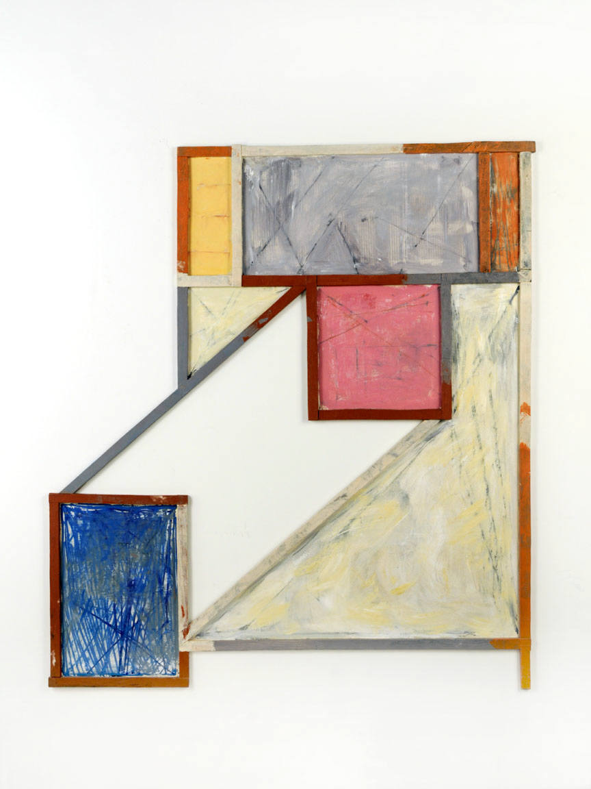 Craig Kauffman's previous plastic relief paintings were his most well-known work. In the constructed paintings of the 1970s, Kauffman deliberately returned to basics, challenged the rectangular format of painting, yet kept his sensibility. "Kauffman's work has maintained its radiant color and its emphasis on certain sensuous physical properties of his materials," according to Susan C. Larsen. 1 It is through his integration of color, linear structure and shape that he achieved the architectural presence of this series of constructed paintings.