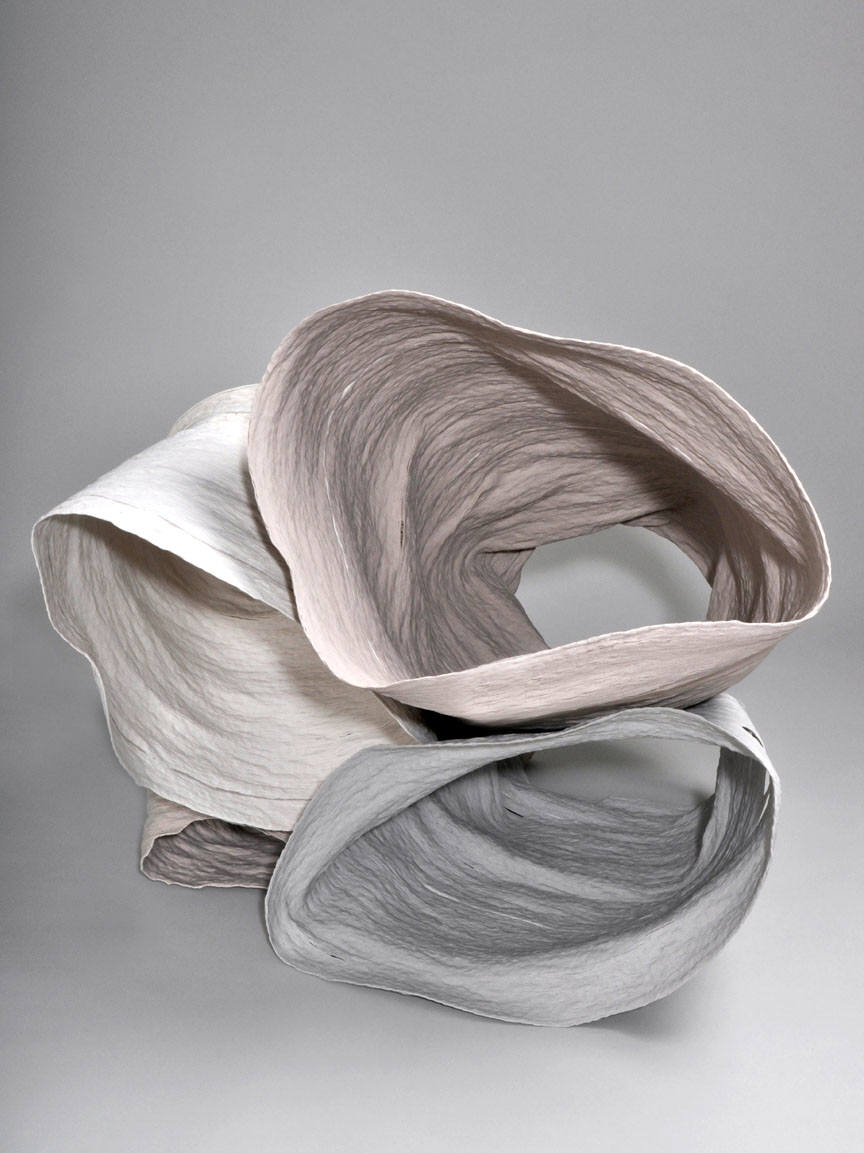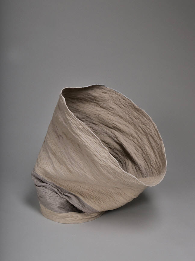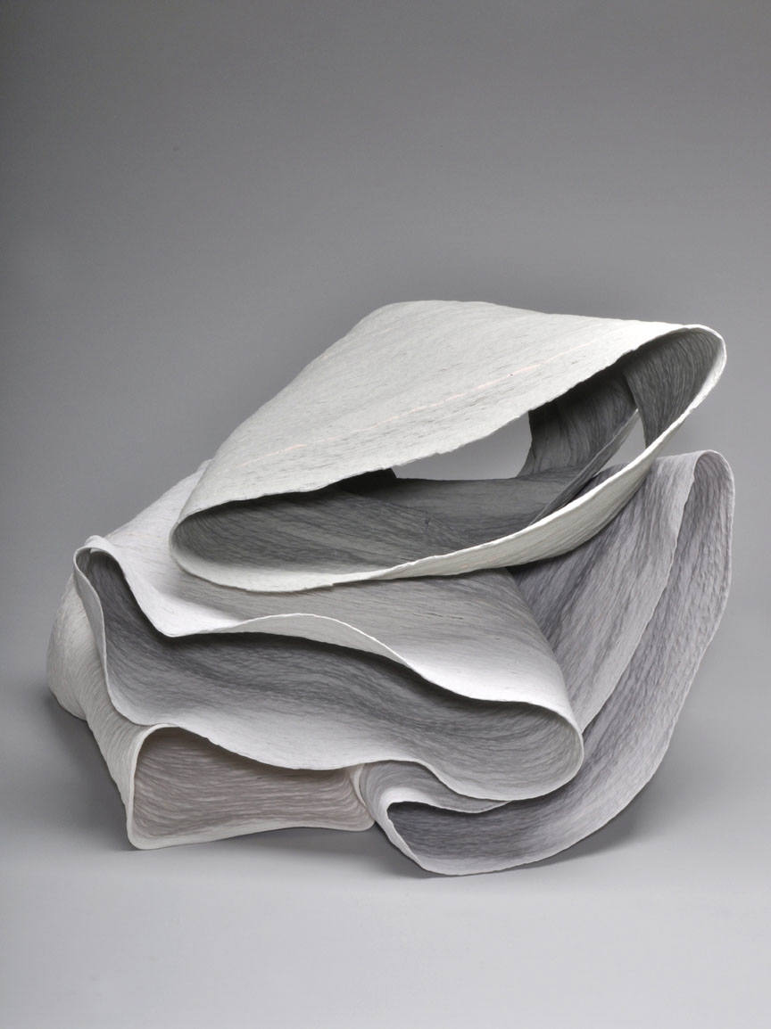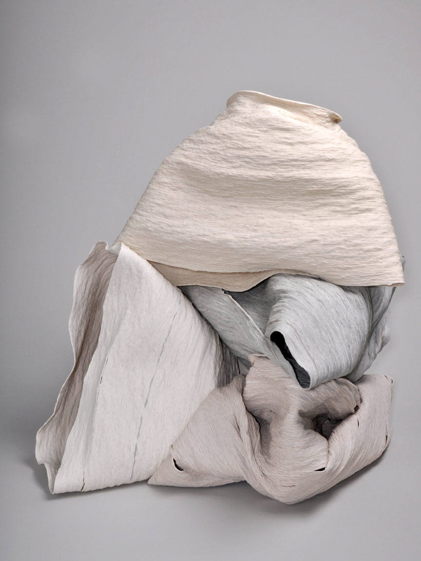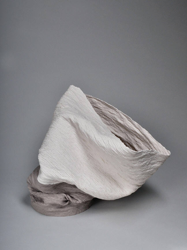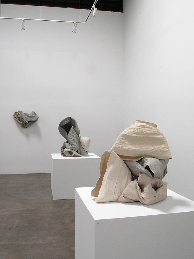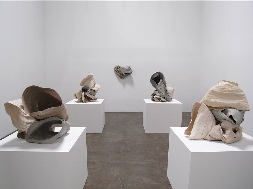 Thomas continues to form her work by coiling and pinching together impossibly thin strands of clay into vertical vessel forms. Rather than smoothing the ridges and furrows that characterize this process, she leaves the textured surface as a permanent record of her engagement with the material. When exposed to the heat of the kiln, the vessels soften or collapse unpredictably. It is by combining several collapsed vessels that she creates her larger sculptures, elegant and graceful compositions that are "exquisite and very delicate, richly open-ended in their associations," according to Constance Mallinson for Art in America.