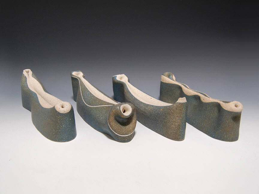 The contemporary ceramist Mark Pharis frequently works in series, with artworks that emphasize the interrelationship of multiple elements. Based in a casual geometry and using a restrained glaze palette, the pieces included in Polyform reflect the artist's interest in architecture. Their sculptural forms work in concert, playing with spatial relationships.