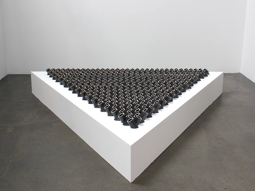 By presenting contemporary ceramic sculpture alongside painting, Polyform seeks to explore how disparate mediums can share common formal and theoretical concerns. Utilizing repetition, sequencing, and spatial and geometric relationships, these four artists investigate how viewers perceive their artworks and the space they occupy.