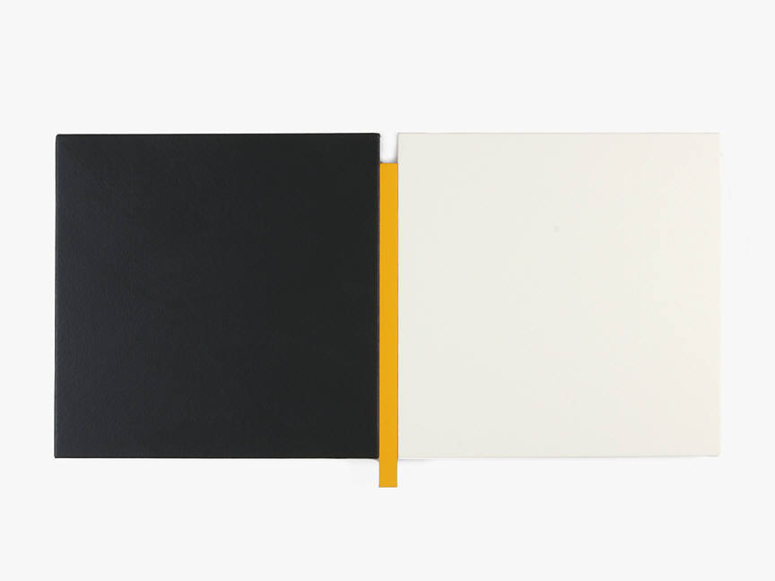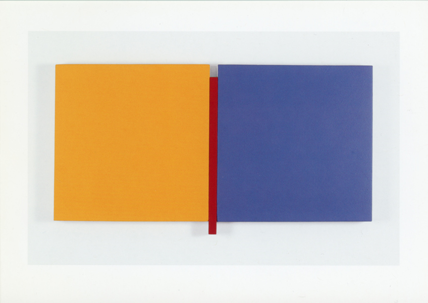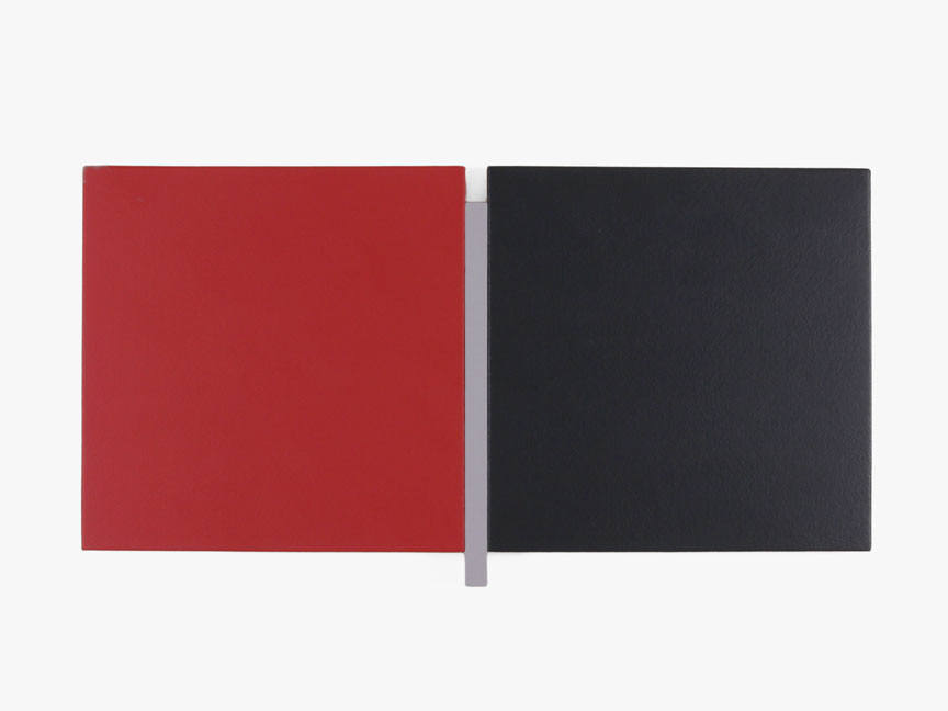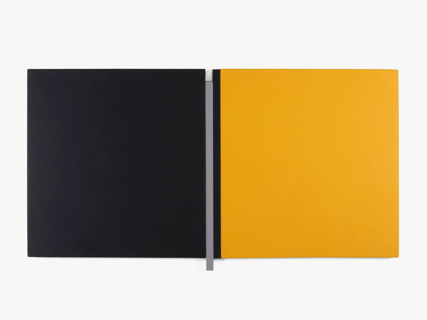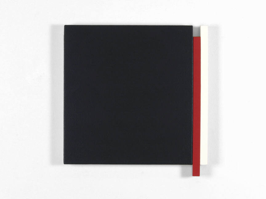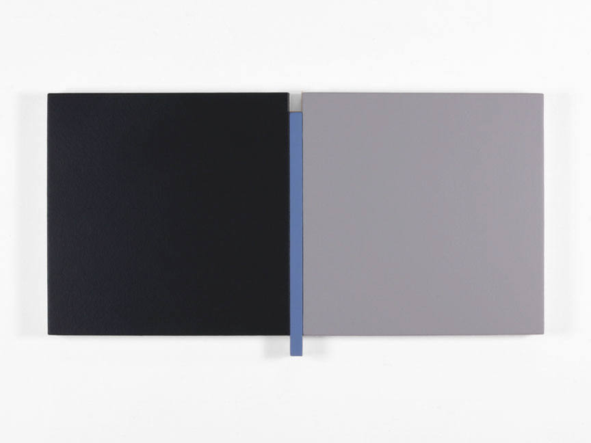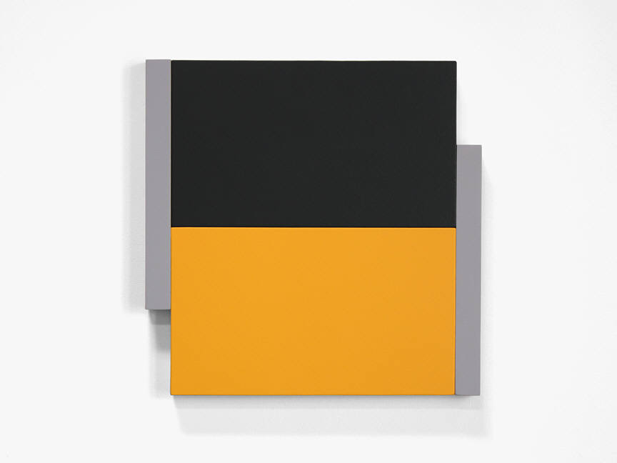 Small but unexpected asymmetries and careful "notches" disrupt the smooth rectangularity of the artist's wood and canvas surfaces, creating a dialogue between form and color that implicates the space of the gallery. The white walls of the gallery become incorporated into the works, functioning as negative space. The relationships between the walls, the works, and the viewers are all held up for examination.
