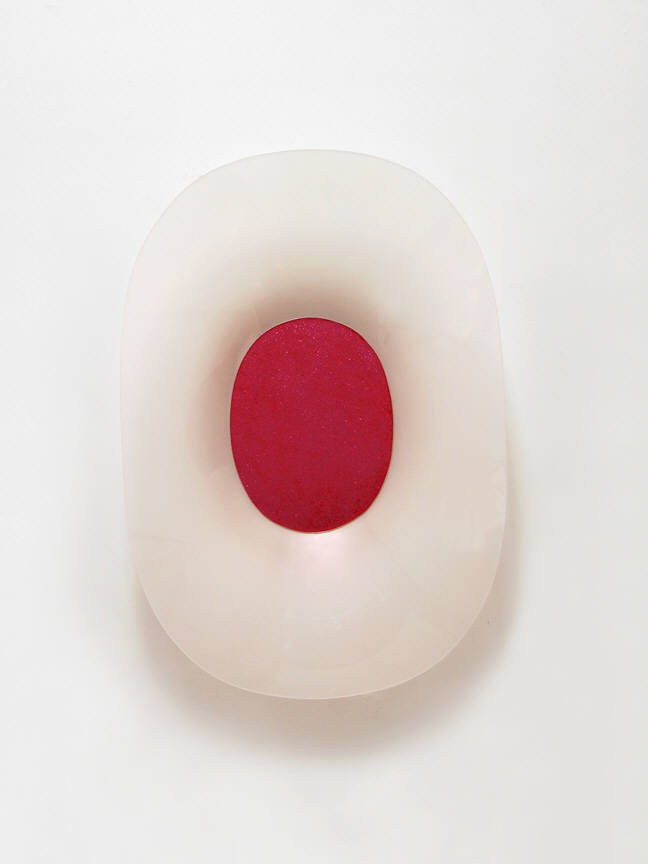 Craig Kauffman began his work with vacuum-formed acrylic plastic in the mid-1960s, and periodically returned to the medium as he invented new forms – expanding his lifelong interest in unorthodox supports for painting. Los Gigantes features two of these forms, a Bubble and a Dish, spray-painted in subtle, luscious colors. Demonstrating a nuanced understanding of color and light, these works radiate with Kauffman's signature sensuality.
