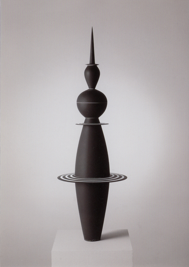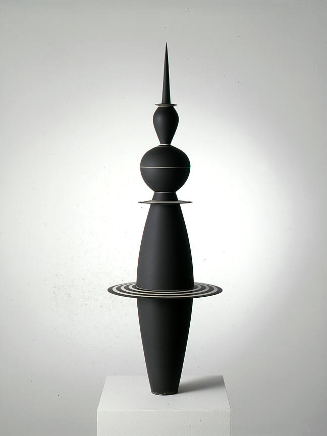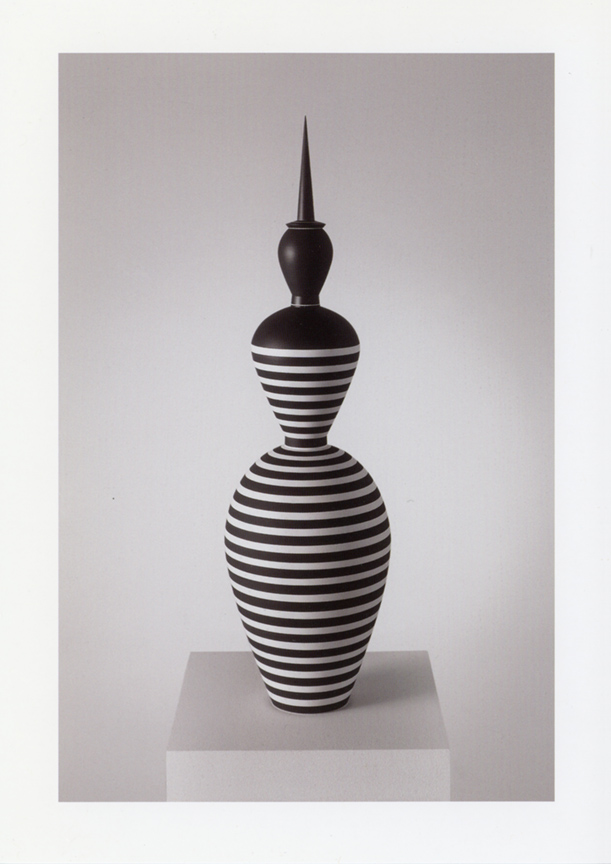 The Frank Lloyd Gallery is pleased to announce the opening of an exhibition of rare works by Roseline Delisle (1952-2003). Born in Rimouski, Québec, Canada, Delisle attended the Institute of the Applied Arts in Montreal before moving to Los Angeles in 1978. Meticulous in their fabrication and decoration, Delisle's nonfunctional vessels are elegant and precise. The geometric rigor of her pieces is offset by their often anthropomorphic proportions, and richly satisfying surface qualities. Kristine McKenna of the Los Angeles Times wrote that "Delisle's work has the delicacy, intricate detail, and impeccable craftsmanship of a Faberge egg. Evocative of stylized harlequin figures that threaten to morph into spinning tops, the work is at once whimsical and austere, and it feels futuristic in an old-fashioned sense."