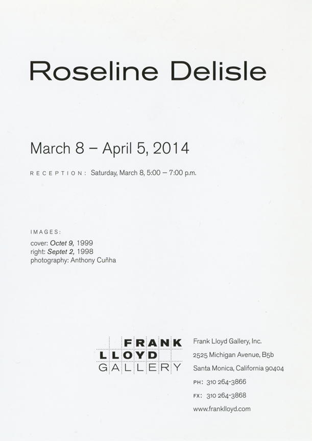 Roseline Delisle's work is internationally represented in major museum collections including the Metropolitan Museum of Art in New York, the Los Angeles County Museum of Art, the Musée des Beaux Arts in Montreal, and the Tokyo National Museum of Modern Art.