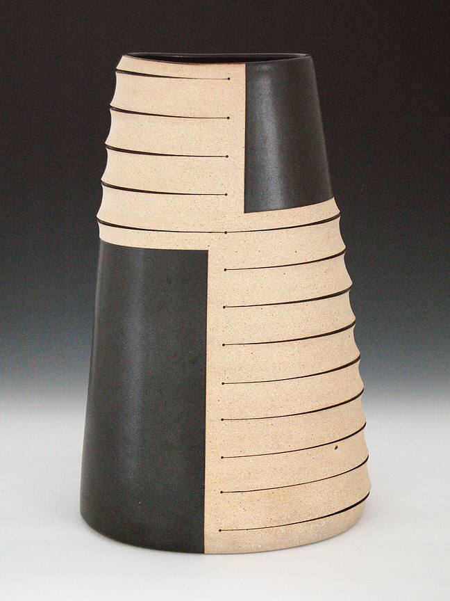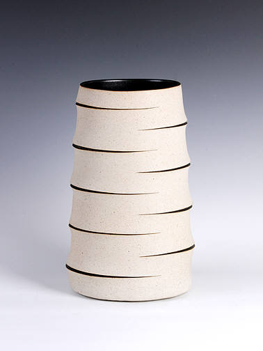 Gustavo Pérez will be represented by works that demonstrate his use of an incised line. Simple, smooth, and symmetrical, his vessels are animated by elegantly geometric cuts into their surfaces. More than a container or receptacle, Pérez's work has an architectural presence. Within a relatively narrow set of parameters, the artist has found a wide range of form and pattern. He works through variations like a musician improvising on a melody, achieving unity between the structure and surface of his vessels.