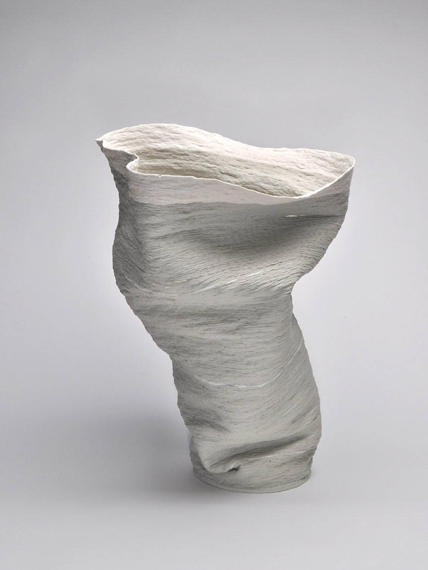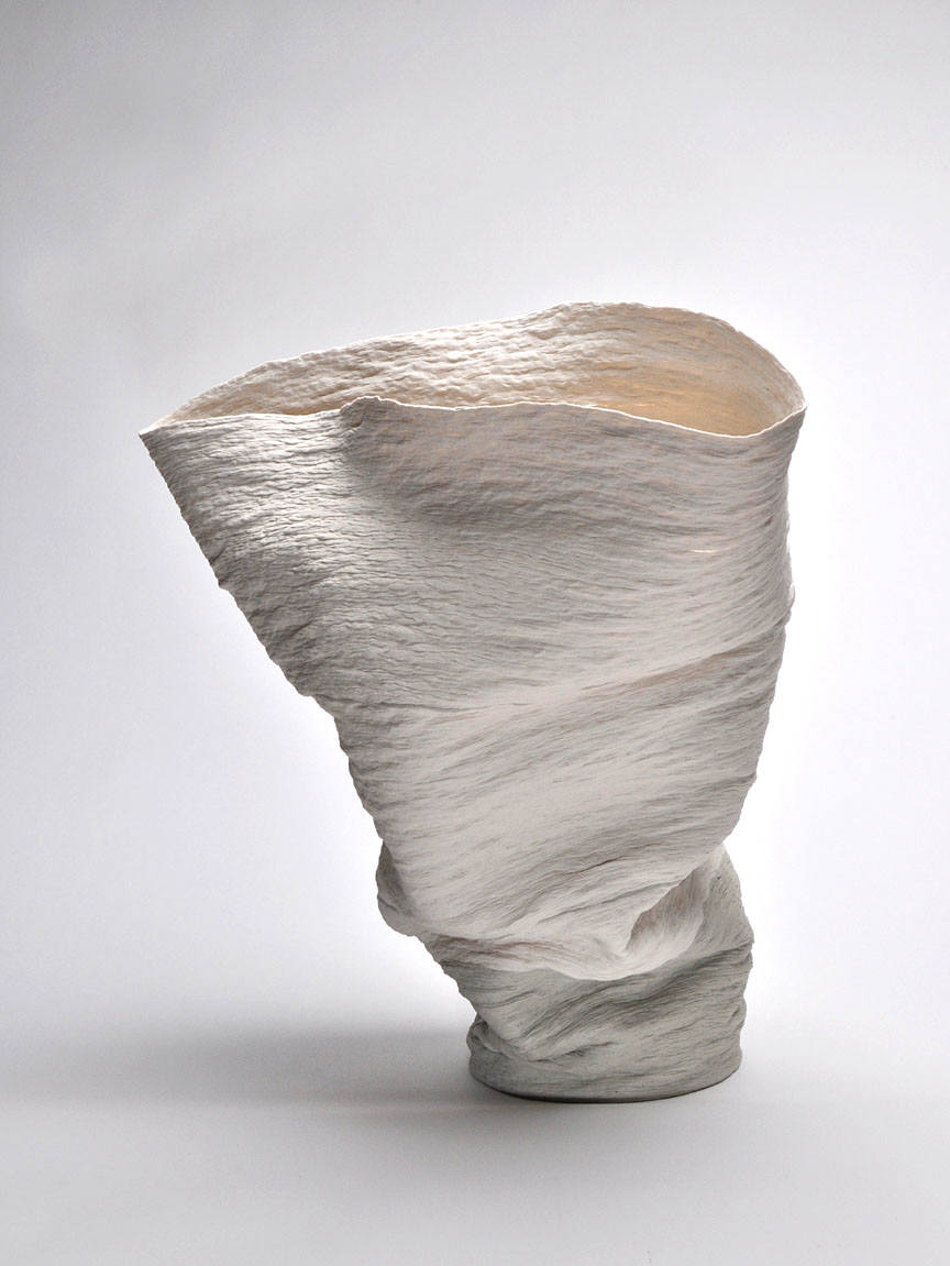 Cheryl Ann Thomas presents a selection of recent Vessels. Formed through the laborious coil and pinch method, the works are then allowed to collapse when exposed to the high temperatures of the kiln. Thomas's work is frequently noted for its allusions to the transience and delicacy of existence. Although the heat of the kiln is what causes the collapse of her forms, it also gives the porcelain she uses its durability and strength. In this way, the artist notes that her work "is not a metaphor, but a real and distinct experience of creation and loss."