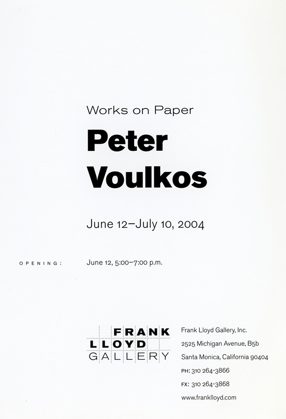 Frank Lloyd Gallery is pleased to present an exhibition of sixteen works on paper, including etchings and monotypes, by Peter Voulkos. Although primarily known as a ceramic sculptor, Voulkos maintained an interest in painting and printmaking throughout his fifty year career.