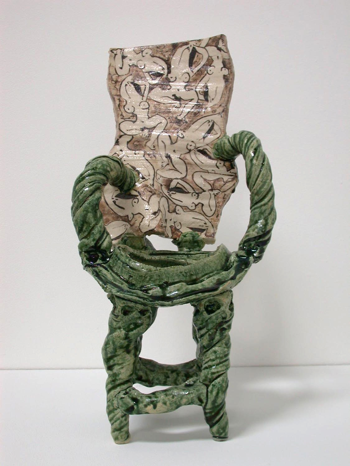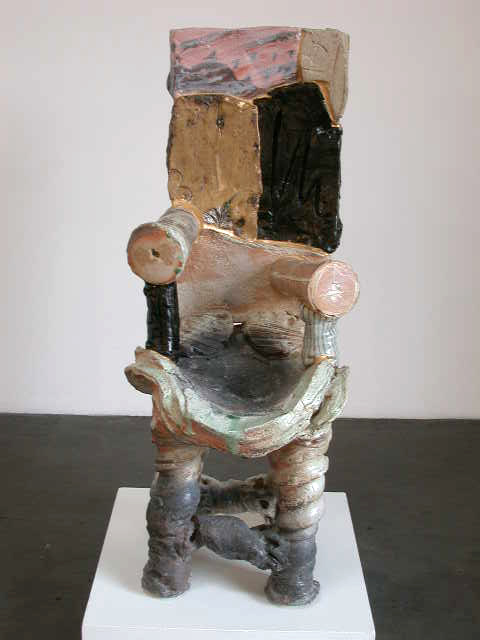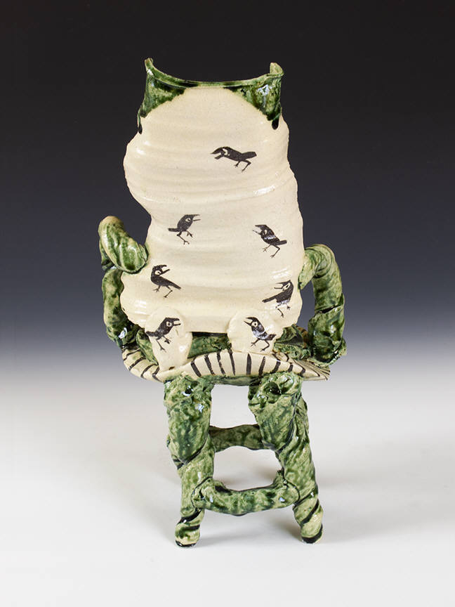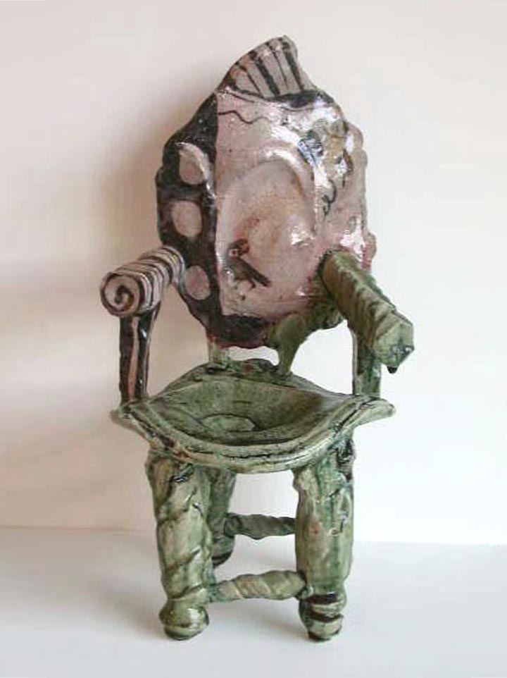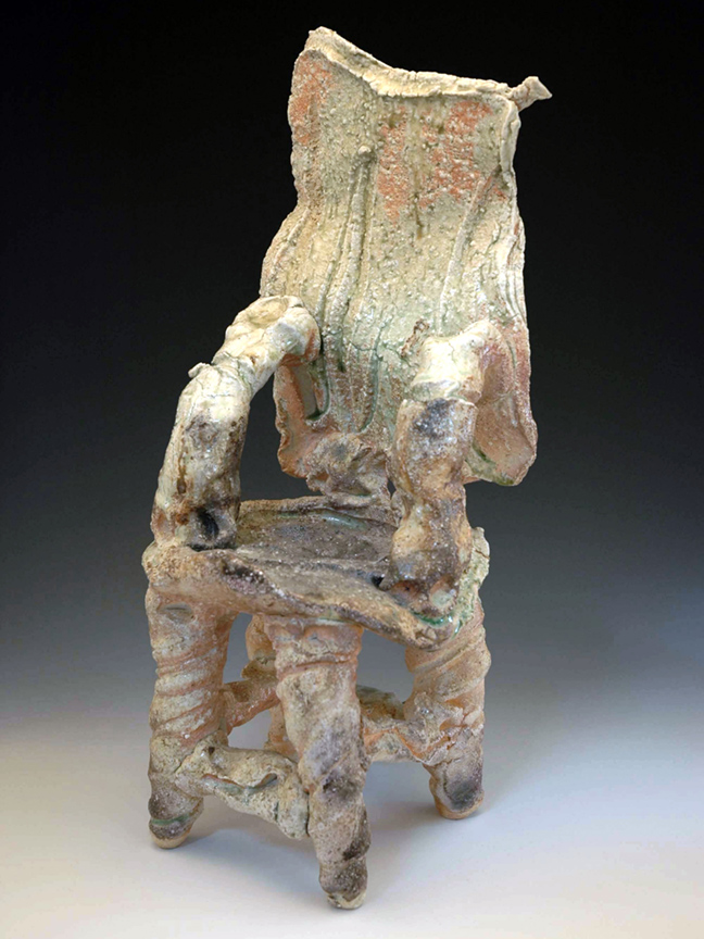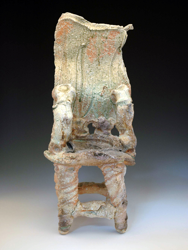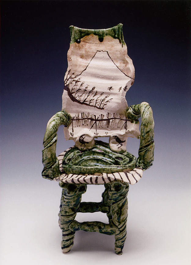 Japanese master ceramist Goro Suzuki works in the centuries-old Oribe style. His extraordinary vessels, stacked boxes and ceramic chairs will be on view at the Frank Lloyd Gallery during the month of February. Suzuki, who is known as one of the greatest living ceramists in Japan, presents twenty new works in a stunning and contemporary version of the Oribe style. Originally from the 17th century, Oribe ware features simple design motifs based on fanciful combinations of squares, rectangles and circles. The artist adds dipped or poured accents of a copper green flowing glaze.