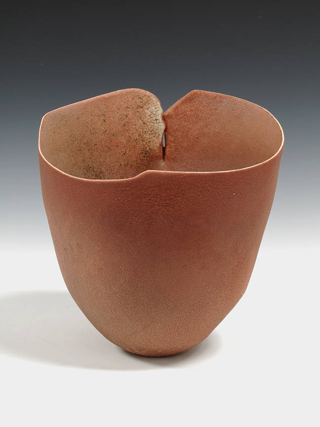 Richard DeVore (1933-2006) was widely respected in the world of ceramic sculpture, and as an educator. His mature body of work revolves around the vessel form, with a glance inside revealing a smooth hollowed bottom, a doubled interior floor, or even a thin, membranous shelf. The earth and flesh tones of his pots simultaneously evoke the tactility of human skin and the complexity of landscape. Within his self-imposed parameters, DeVore created a rich and diverse body of work, each piece subtly distinct.