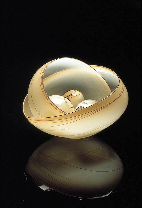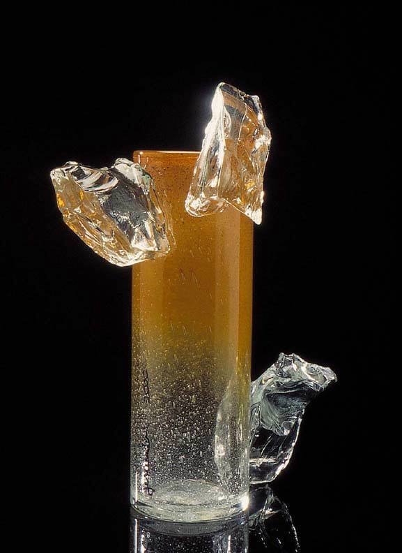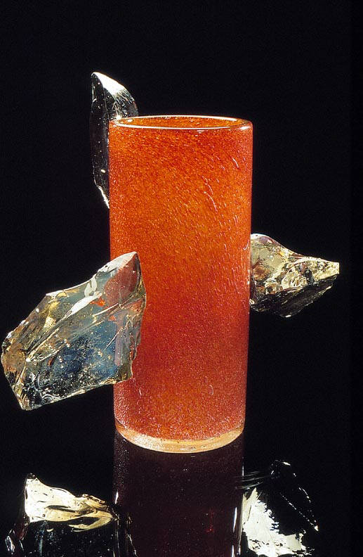 The Frank Lloyd Gallery show culminates with the presentation of several rich red Persians in the main gallery. According to Henry Geldzahler, these forms "manifest glass' real character as a frozen liquid…and allude to romance, mystery, an ancient world, and its survival in the present." The Persians series, begun in 1986, were inspired by the process of glass blowing and many technical experiments involving pulling the molten glass, and using optical molds and body wraps in dazzling, rich colors.