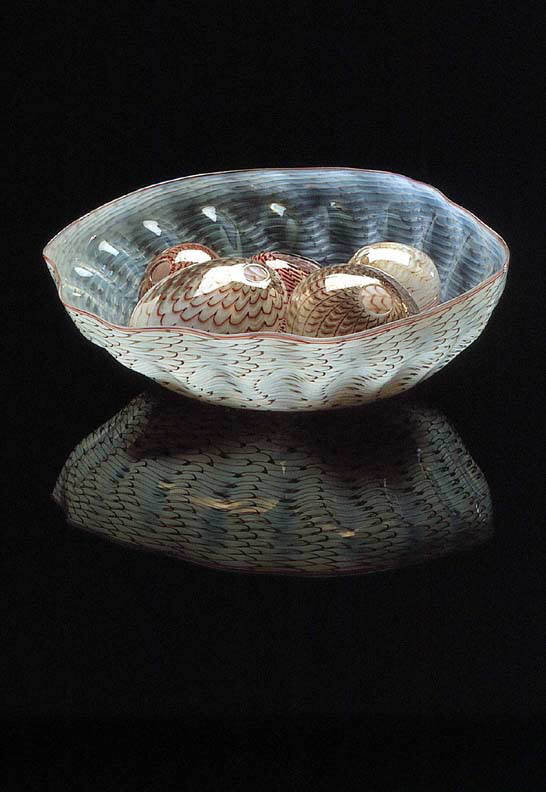 Chihuly: Los Angeles at Frank Lloyd Gallery will present a focused selection of individual works for which Chihuly has earned his renown. These unique small-scale works are from various series known as Baskets, Persians, Cylinders and Seaforms. Selected to present an exhibition that shows the breadth of the artist's work - from subtle, elegant and refined to passionate and sensual - each piece will be perfectly integrated into the architecture of the gallery. Visitors will enter a darkened space, where they will be presented with a work from the Persians series. Soft Cylinders and Jerusalem Cylinders, some of the most sensuous and striking forms in the Chihuly repertoire, will be shown in the gallery display cases.