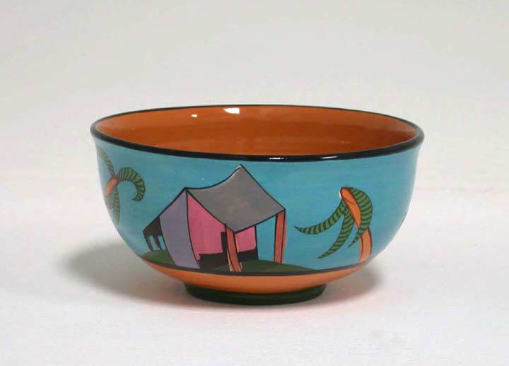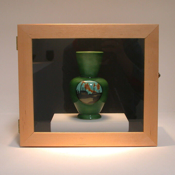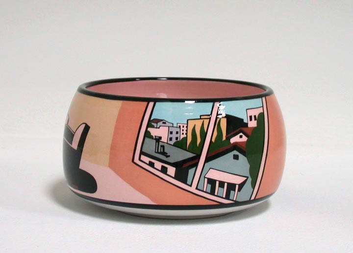 From May 7-June 4, the Frank Lloyd Gallery will present an exhibition of selected works by Ken Price, including cup forms and bowls with painted landscapes. Created in the 1980s and early 90s, these intimately scaled works exhibit Price's skill as a colorist and draftsman. Several cups and bowls display scenes ranging from beaches dotted with palm trees and cabañas to apartment interiors and suburban skylines. Two cups demonstrate Price's organic, soft-edged forms and peculiarly inventive surfaces.