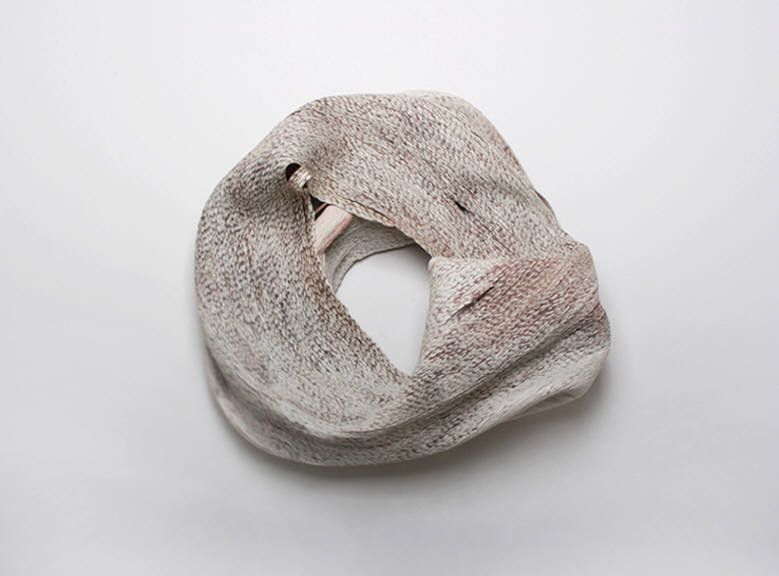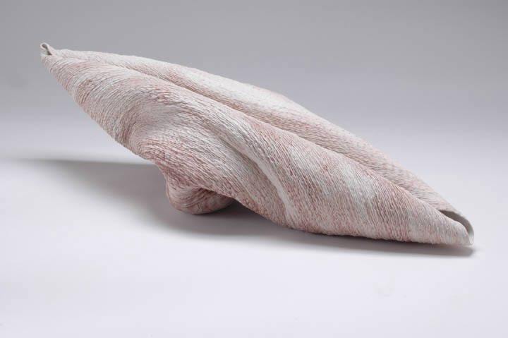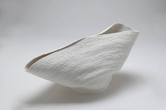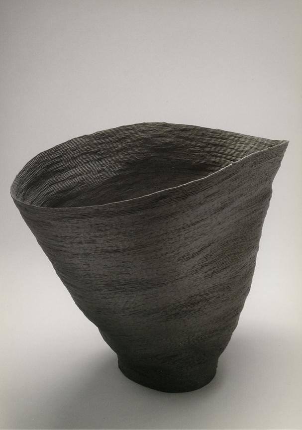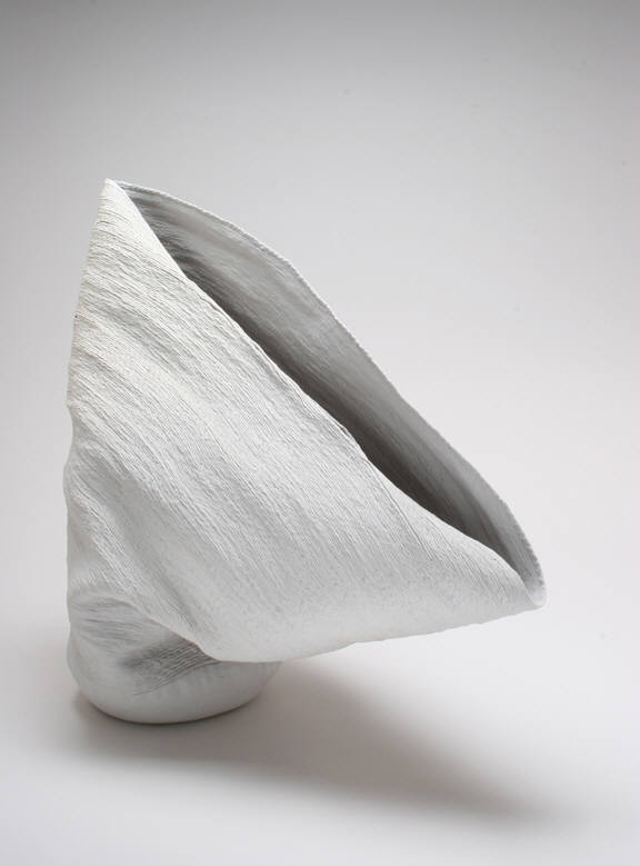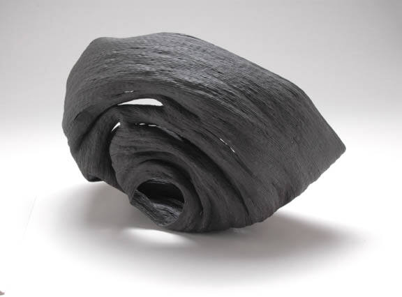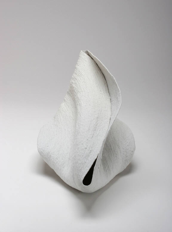 Coiling is a way of hand-building a pot using "snakes" of clay. Its history includes Pre-Columbian pottery and West African pottery. Most Neolithic cultures also used this method of making for large storage jars. However, this technique is still used by contemporary ceramic artists. Usually, each coil is integrated with the previous one so that its identity as a coil is lost. In Cheryl Ann Thomas' work, the delicate coils retain the touch of the hand. In fact, the rhythmic movement of the hand and the repetitive patterning of the layers give the sculptures their significant form. As the artist states: