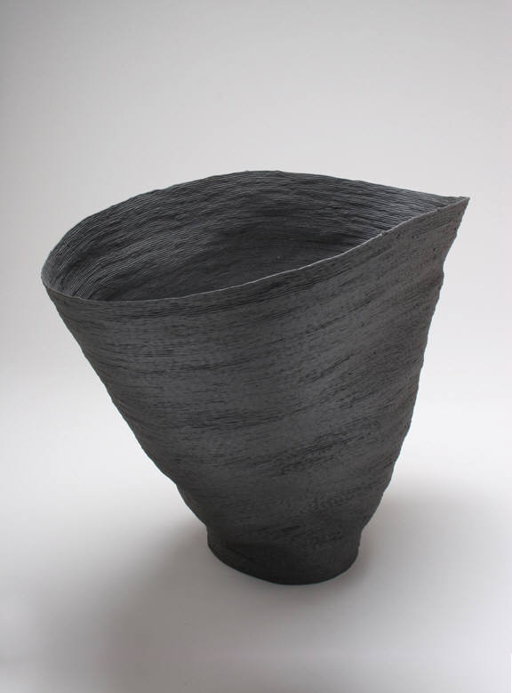 "I work within the possibilities and limitations inherent in the coiling process, combined with the potential for change occurring during the firing or over-firing of the clay. The coiling technique involves a succession of rhythmical movements that connect me intimately with the clay in both body and mind. My tools are my hands. My imprint causes the texture of the piece. The combined variables of climate, clay conditions and human attention/inattention create the possibility of endless results."