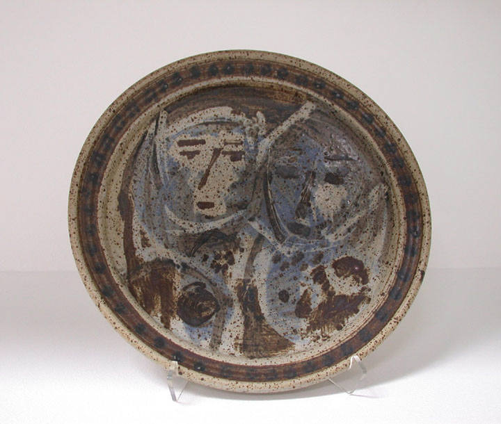 Robert Turner's signature forms from the middle 1970s are a quiet balance of form and incision. Peter Voulkos is represented by excellent examples of a rugged vessel, an early painterly plate, and a woodfired tea bowl. John Mason's two early vase forms are accompanied by a superb untitled plate form dated 1964-5.