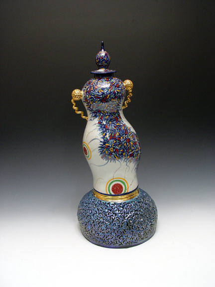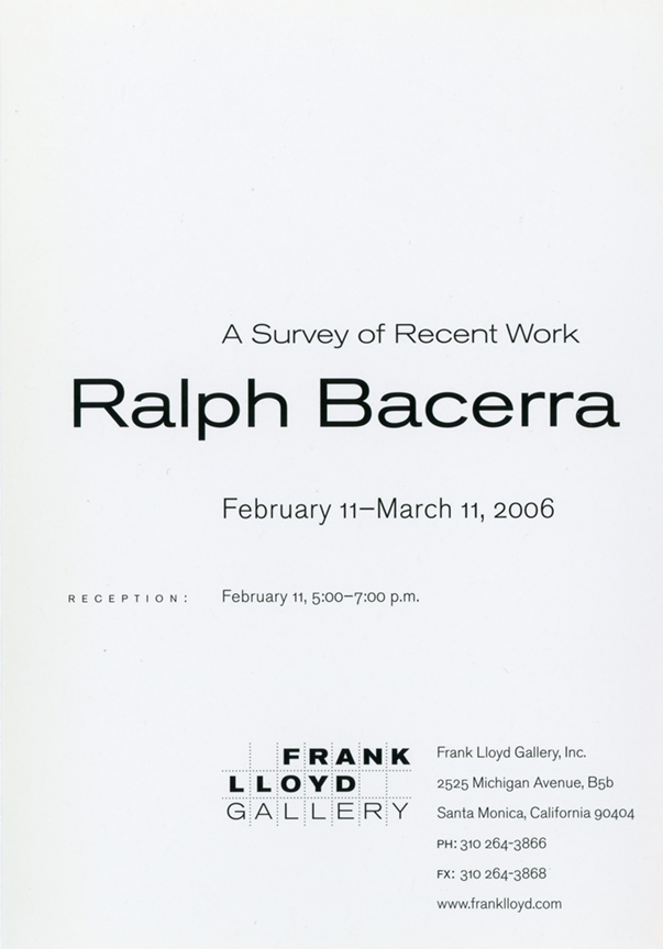 The Frank Lloyd Gallery is pleased to announce an exhibition of work by Ralph Bacerra, a major figure in the world of ceramic art. Ralph Bacerra's work has continually addressed the beauty of the decorated ceramic surface. Although the works range in scale and form, Bacerra has maintained a steadfast focus on ornamentation. The artist's meticulous approach incorporates a variety of elaborate non-western techniques, merging the influences of traditional Asian ceramics with Islamic patterns and abstract design. As curator Ulysses Grant Dietz recognized, "An entirely different painterly quality began to appear in American studio pots in the late 1970s. Ralph Bacerra was one of the first potters to revive the highly decorative surface, turning to enamels and luster glazes in a way that would have been unheard of in Los Angeles (or anywhere else in the Western world, for that matter) a decade earlier."