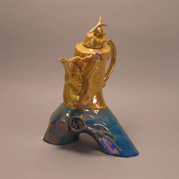 Bacerra's work is also influenced by his travels to China, Japan, and Taiwan. His work incorporates a multitude of visual experiences, including his investigations of Japanese Imari ware, layered glazes with enameled silver and gold, and rich celadon glazes. Bacerra incorporates traditional techniques—yet adapts them in his own style.