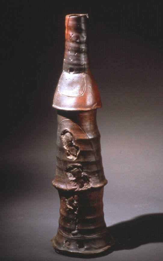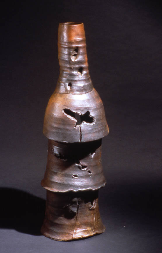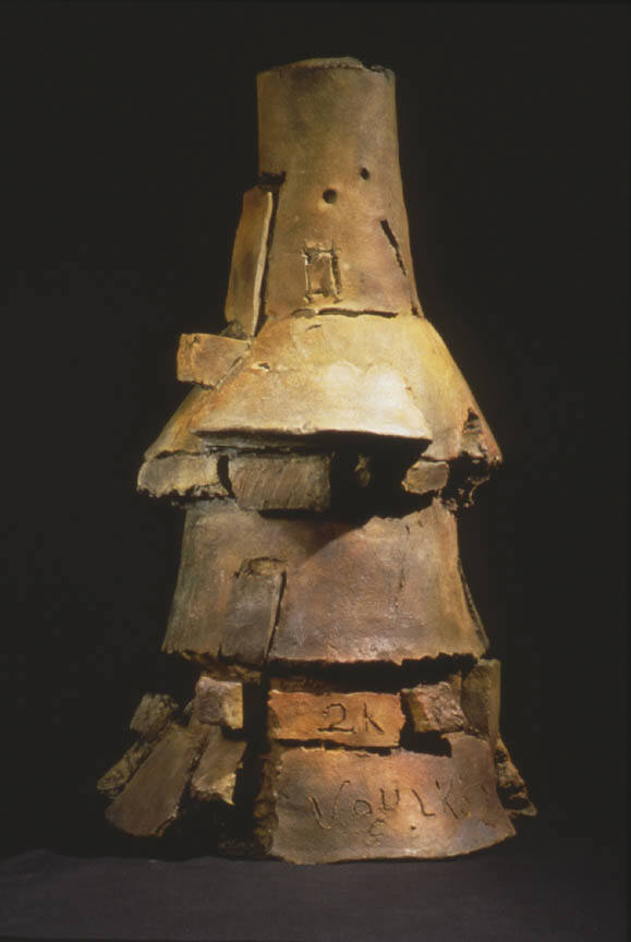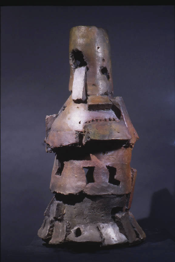 Although primarily known as a ceramic sculptor, Peter Voulkos maintained an interest in bronze casting for over forty years. Massive and rugged bronze works by Voulkos in bronze emphasize his strength as a builder of form. The large cast bronze sculptures are in the form of his "Stacks", the signature form of his massive sculptures. Voulkos' line quality, alternately sinuous and deeply incised into the bronze, is directly related to the surface of his ceramic sculptures.