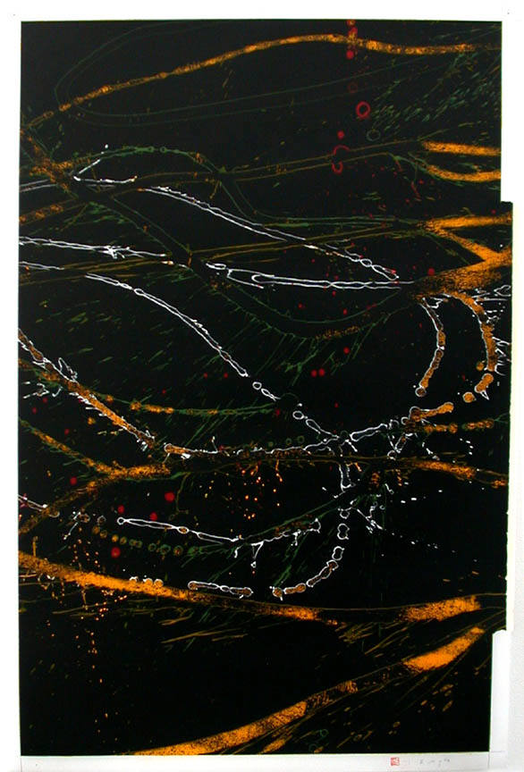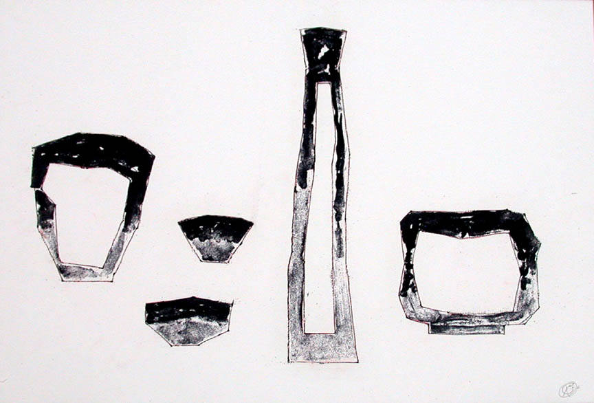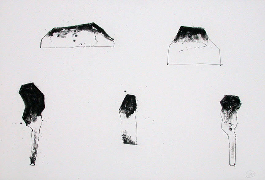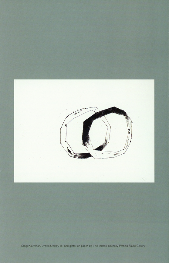 Craig Kauffman (born 1932 in Los Angeles) has produced a new body of drawings in the past two years, and selected works will be included in this exhibit. Many of these works demonstrate Kauffman's facility with simple and playful line, sometimes depicting common objects such as tea bowls. However, Kauffman's recent subject matter has also included the playfully erotic image of a high-heeled shoe, or he has ventured into abstraction. Craig Kauffman's buoyant line has always been a part of his repertoire, and is a key element of the paintings, ranging from the abstract canvases of the 1950s to the silk paintings of the 1980s and 1990s. "By all accounts, one of the most gifted and precocious of the Ferus artists was Craig Kauffman," wrote Susan C. Larsen in an essay titled Los Angeles Painting in the Sixties.