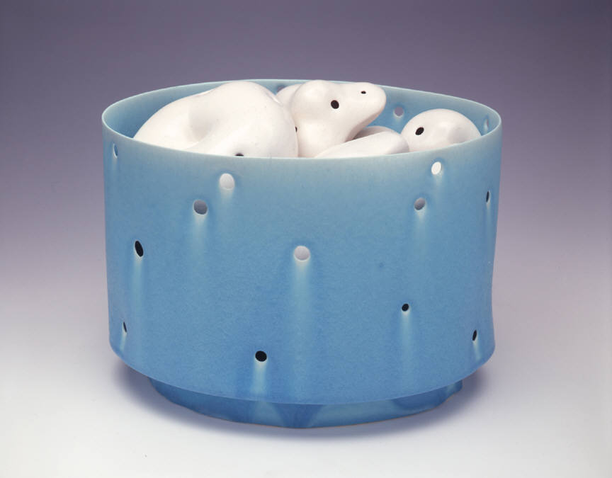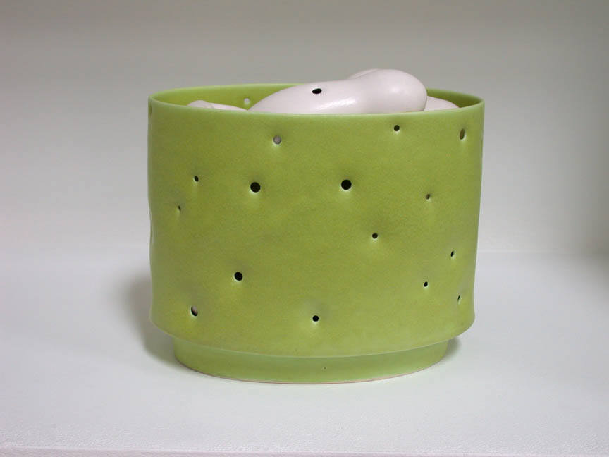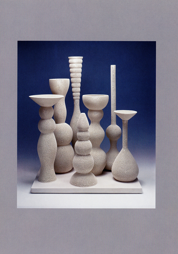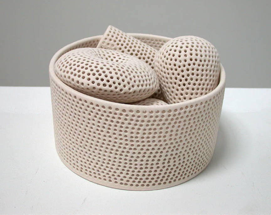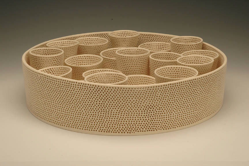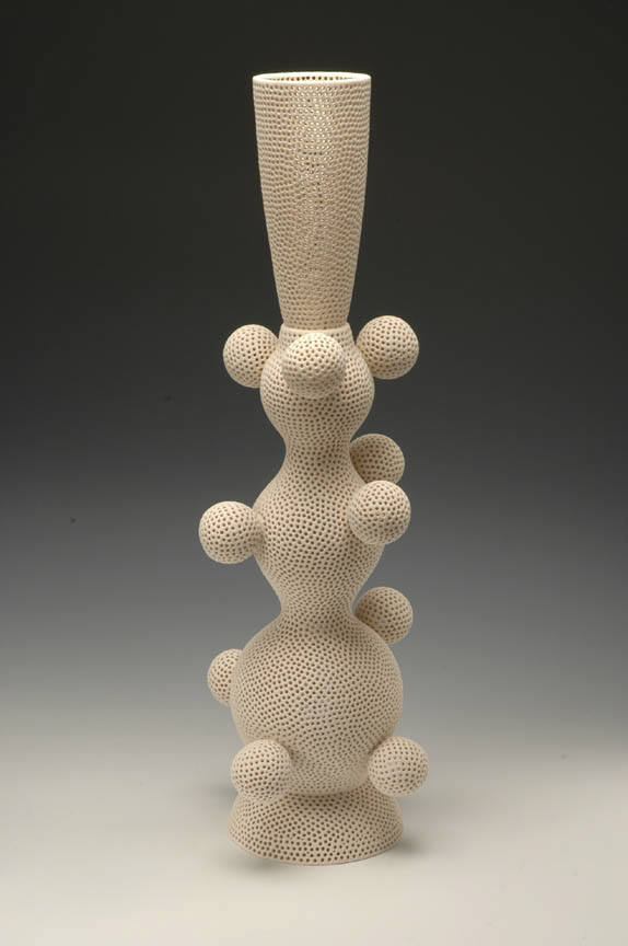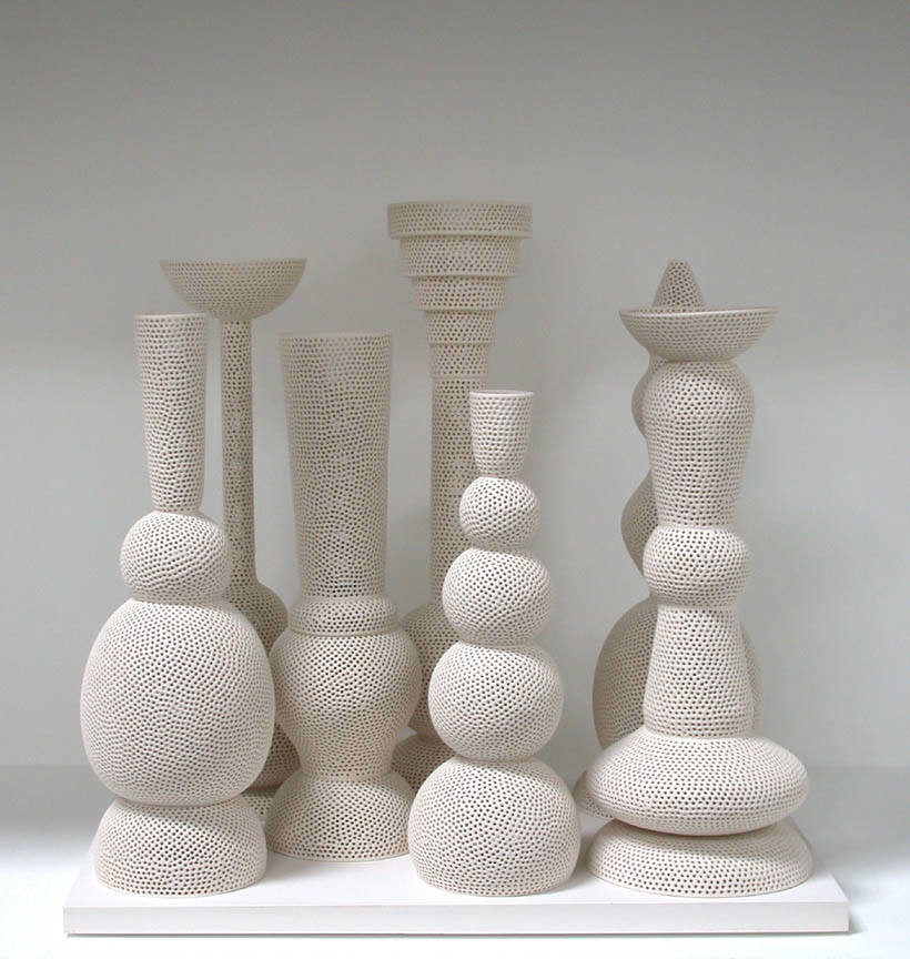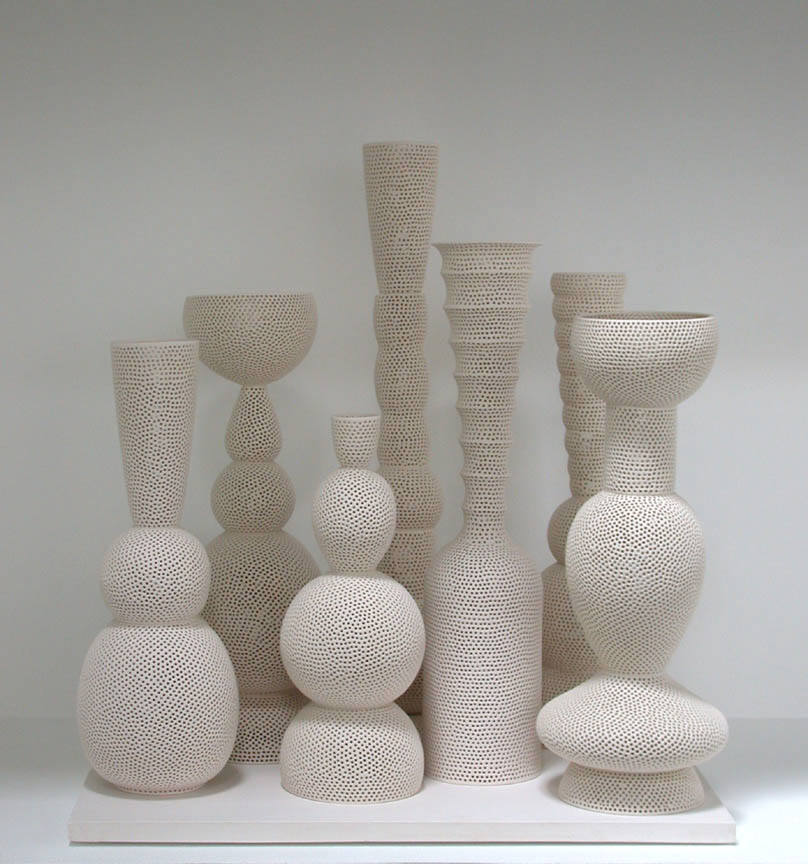 The Frank Lloyd Gallery is pleased to announce a one-person show by ceramic artist Tony Marsh. All of the works have a relationship to the vessel. New work will include a series titled Perforated Vessel Still Life Series, in which the artist explores the interaction of light on vertical forms that seem to hover. The airiness and shimmering qualities of these works are achieved by perforating all elements of the still life.