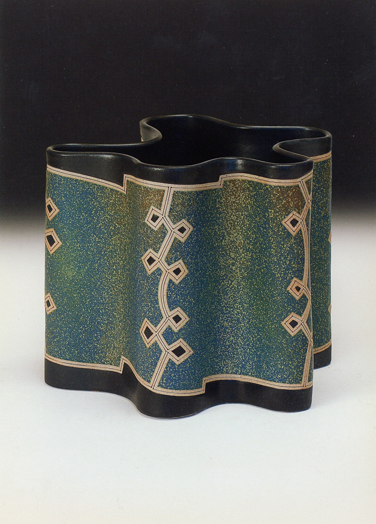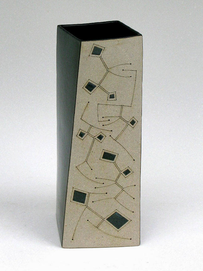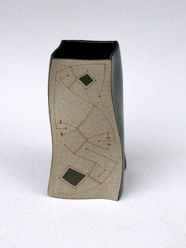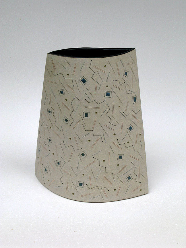 Pure in form and without specific associations, his language of line and the definition of the vessel mark his work as a distinctive voice. The form is not just a container or a receptacle; it is architecture. The work is also a support for drawings, which are at once ancient and modern, mechanical and lyrical.