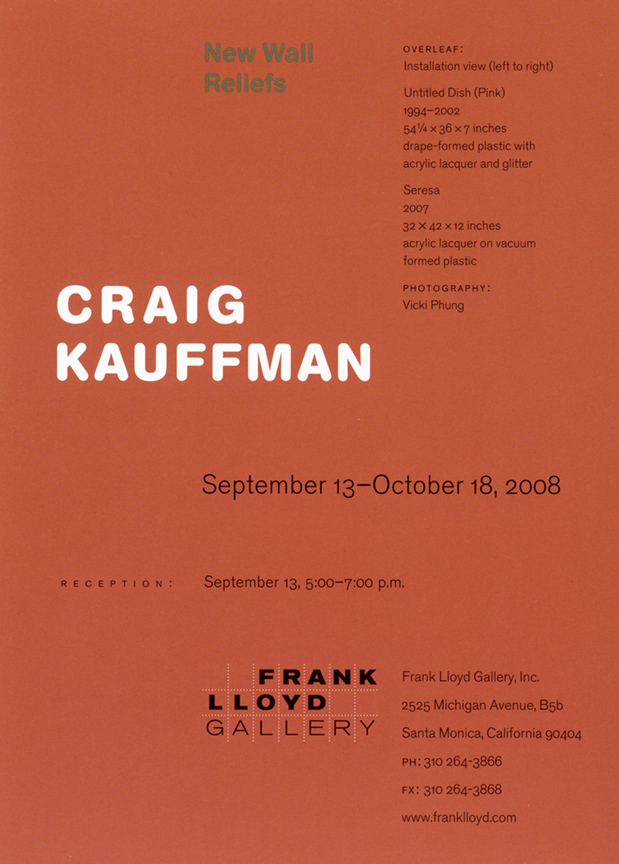 ² Armstrong, Richard, Craig Kauffman: Wall Reliefs from the Late 1960s, Whitney Museum of American Art, 1987.