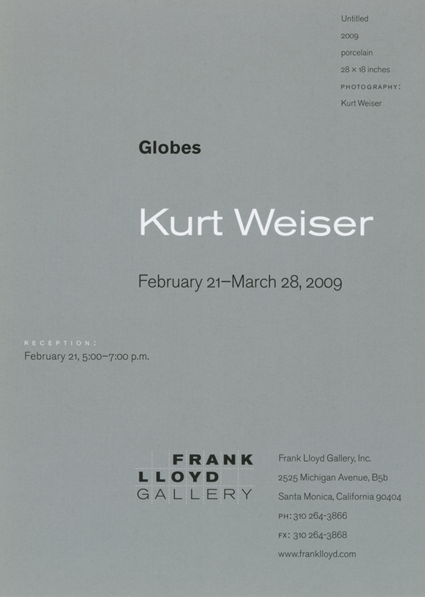 This is Kurt Weiser's fourth one-person show in Los Angeles. A traveling survey, Eden Revisited: The Ceramic Art of Kurt Weiser, has been touring the United States for the past 15 months, and will open at Arizona State University on February 14, 2009. Weiser's work is in the collection of LACMA, London's Victoria and Albert Museum, and the Museum of Contemporary Ceramics, Shigaraki, Japan.
