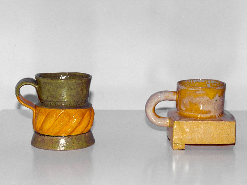 For his part, Price appears to be completely aware of style as a language he can manipulate in his art, as is evident in an untitled piece from 1959. Basically a large, slouching cone, this object puts up a rough-hewn appearance which is only that—an appearance. Behind the imperfect form and crusty yellow-green glaze, viewers can detect a calculating mind and its calibrating effects: A small cavity opens onto the interior of the form, which looks as if it's filled with wormy shapes that create a slightly sickening but also subtly manipulative impression.