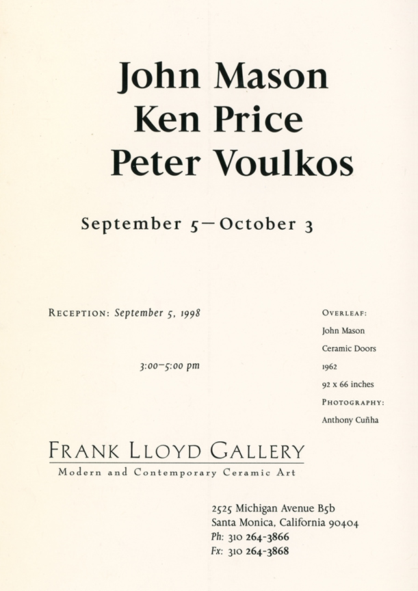 From "John Mason, Ken Price, Peter Voulkos," by Carmen Iannaccone. Art Issues, November/December, 1998.
