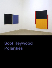 This nineteen page online catalogue was published to accompany Scot Heywood's exhibition of new work titled Polarities. Composed of multiple monochrome panels, the new paintings employ two vertical bars which seem to move in specific directions. These geometric planes of color interact with the refined surface technique that characterizes the artist's work.