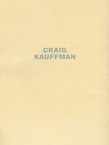 This thirty-two page catalogue documents Craig Kauffman's solo exhibition at the Frank Lloyd Gallery from September 13 through October 18, 2008. The catalogue includes eighteen color plates of Kauffman's recent wall relief sculpture: Bubbles, Donuts, and Dishes. It also includes images documenting Kauffman's early plastic work, as well as an essay by Hunter Drohojowska-Philp.
